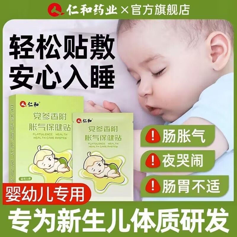 仁和新生婴儿胀气贴肚子胀排气参桂肠胀气宝宝肚脐贴防二月闹神器