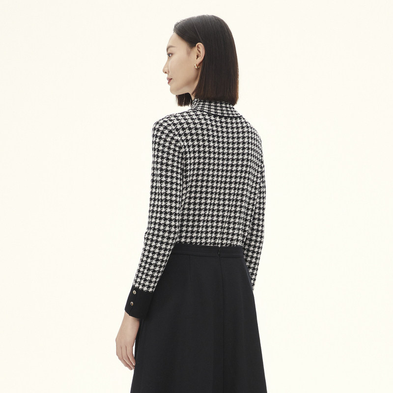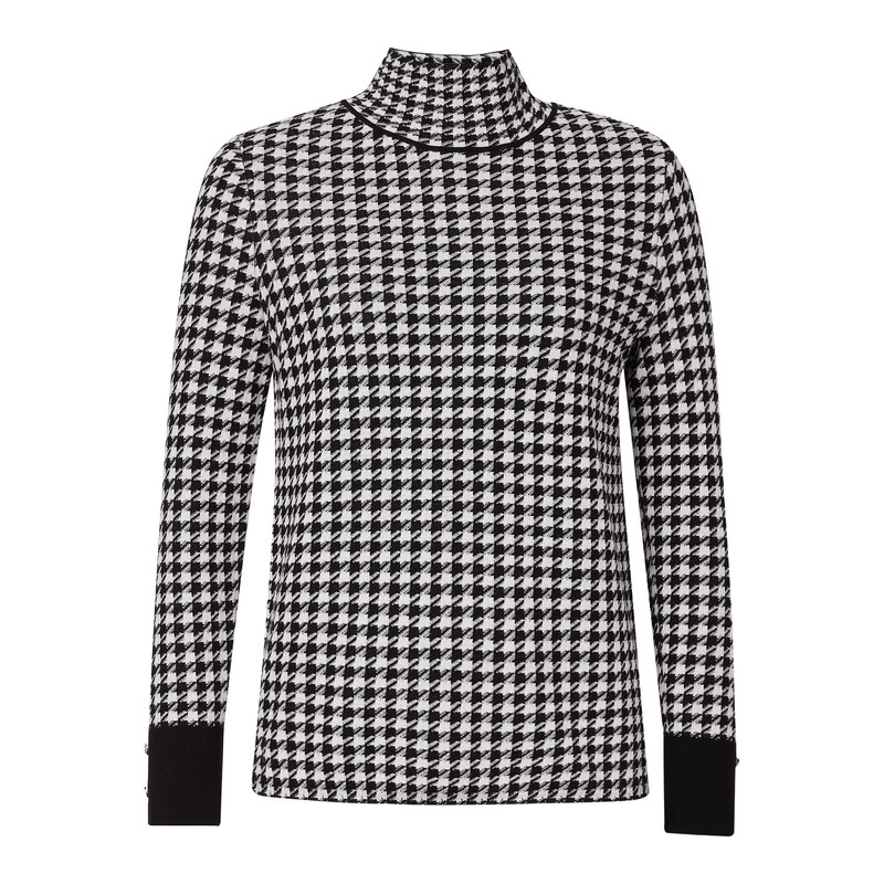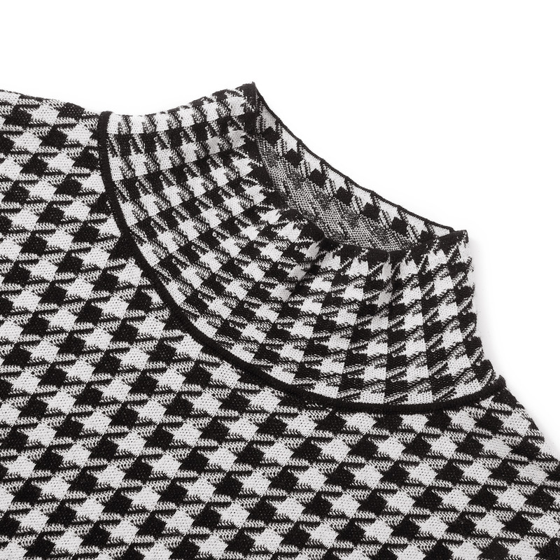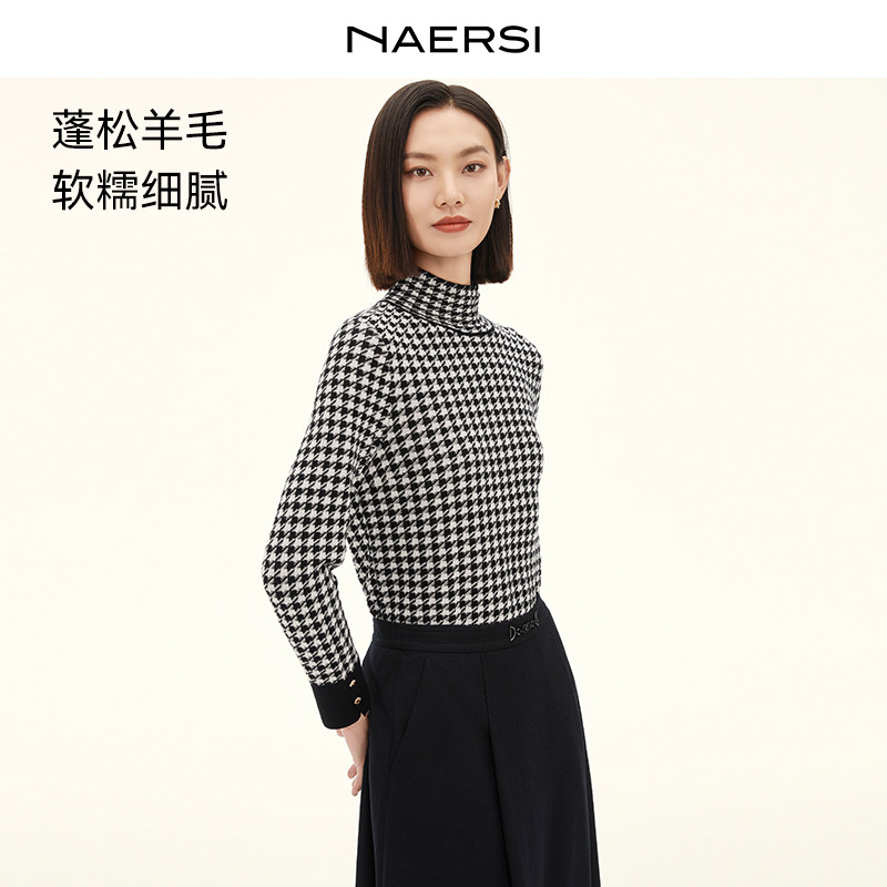 NAERSI娜尔思绵羊毛针织衫高领时尚千鸟格羊毛衫2025年冬季新款