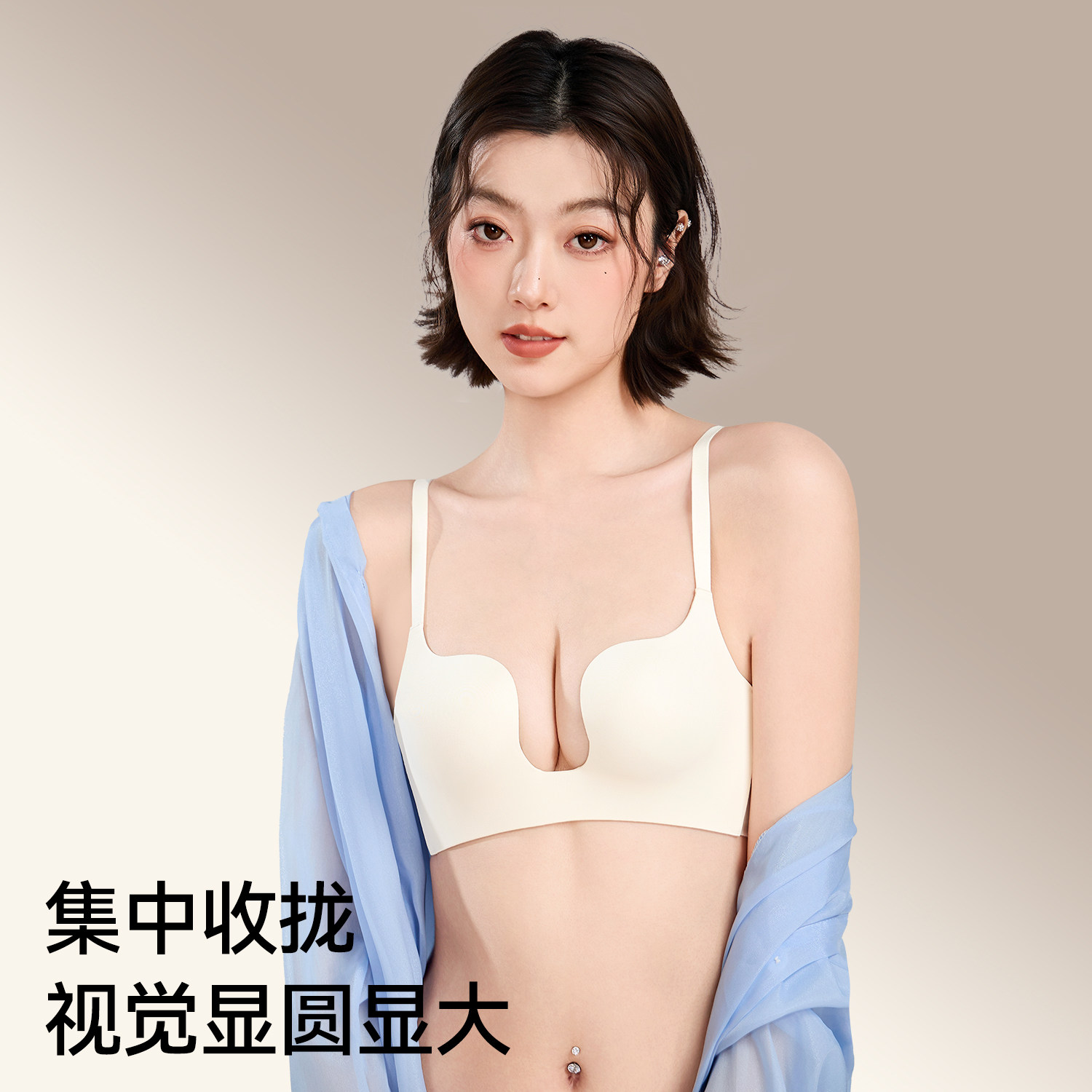 都市丽人内衣女聚拢小胸显大防下垂深V性感无痕U型美背无钢圈文胸