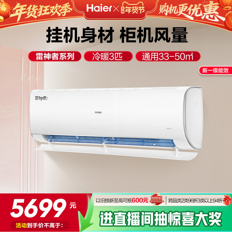 【大挂机】海尔空调雷神者3匹官方家用一级挂机卧室除菌护眠72KEA
