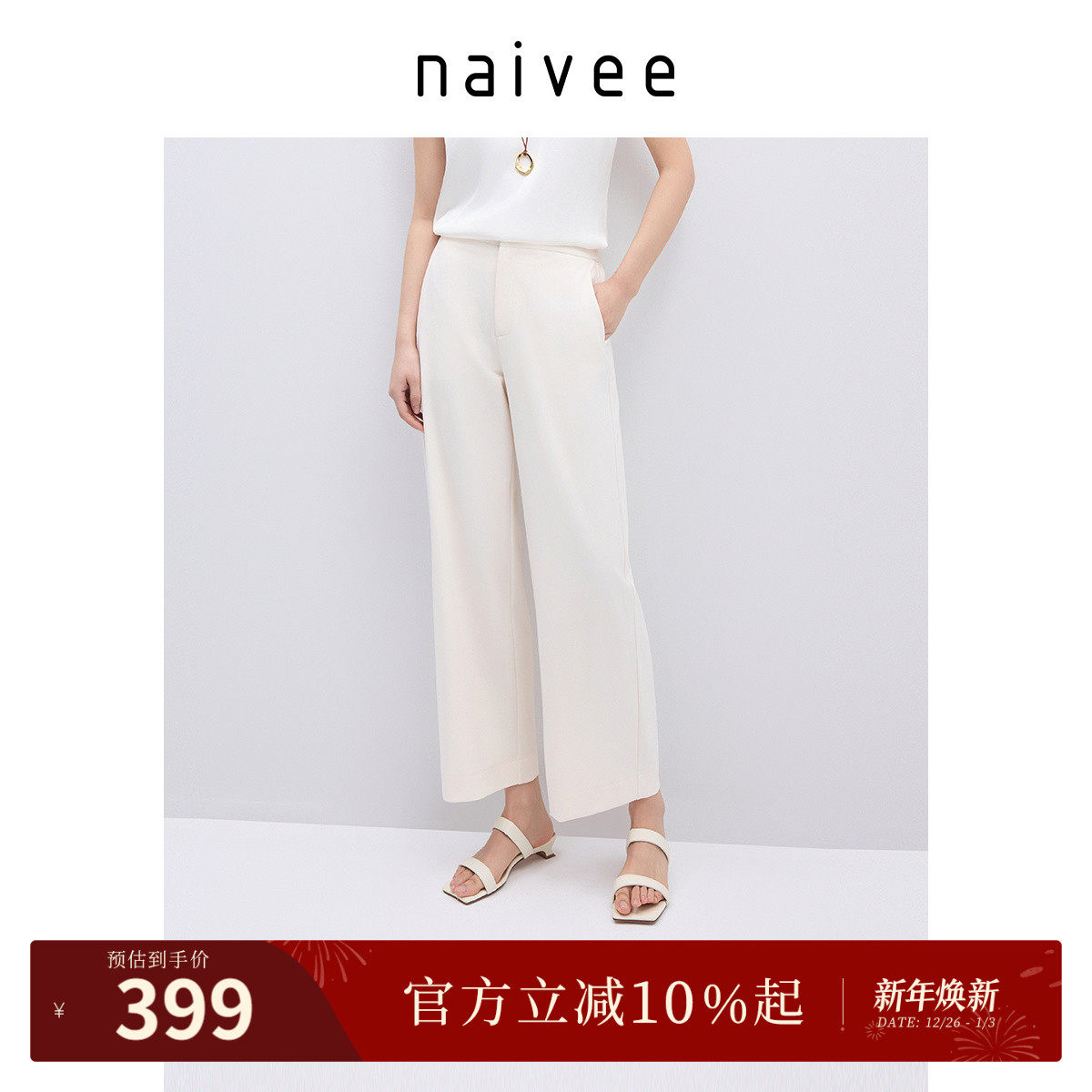 【九分哈伦裤】naivee纳薇白色直筒休闲裤女25秋新透气高弹香蕉裤