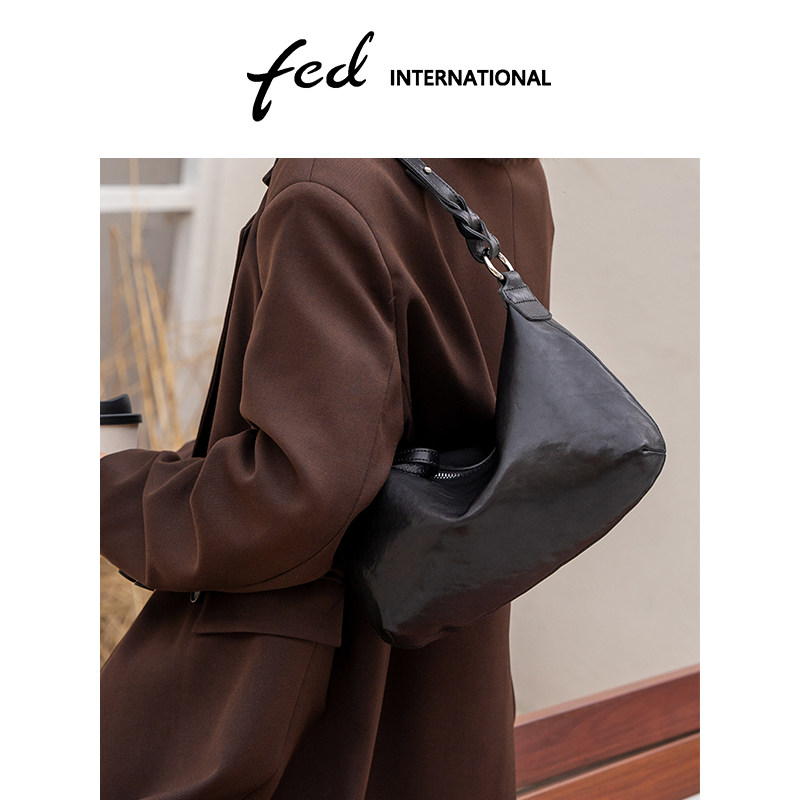fed植鞣皮头层牛皮真皮女包HOBO包单肩斜挎女士包出游旅行BFA9056