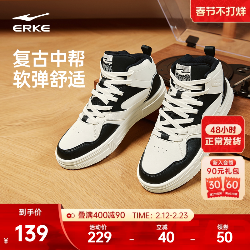 星球熊猫鸿星尔克高帮板鞋男鞋春季新款鞋子情侣休闲鞋女款运动鞋