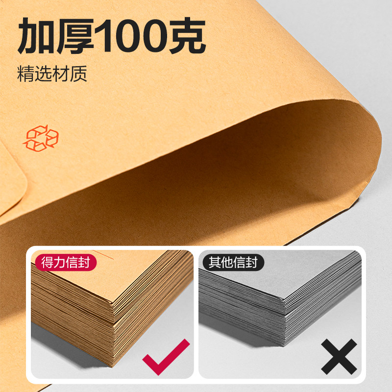 得力牛皮纸信封工资袋牛皮a4大信封纸袋子增值税发票专用信封收纳袋批发3号5号7号9号邮局标准信纸专票袋加厚