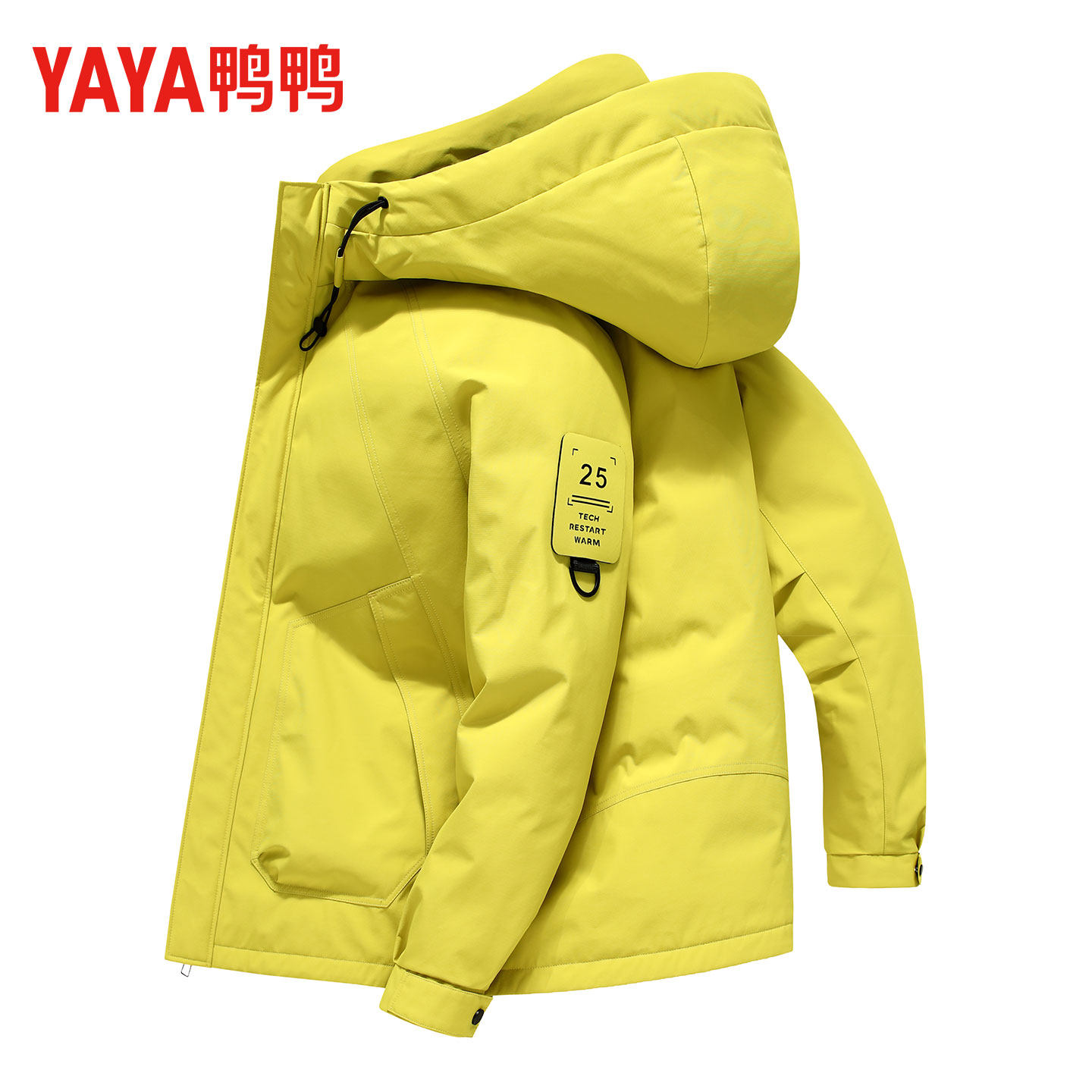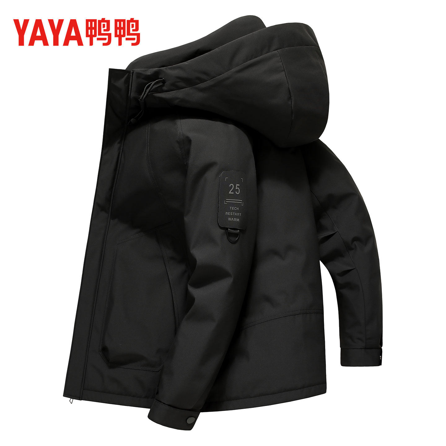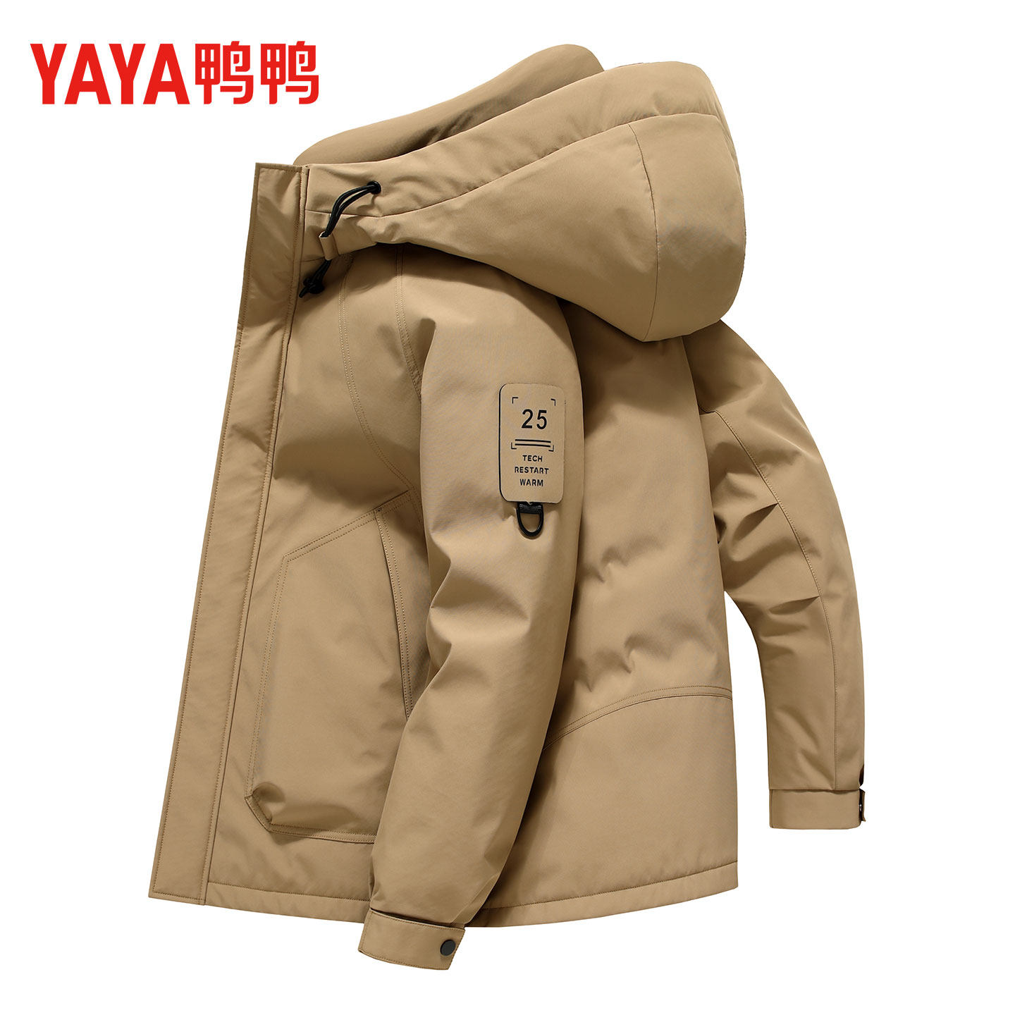 鸭鸭连帽羽绒服男2025冬季新款休闲短款加厚防风保暖工装户外外套