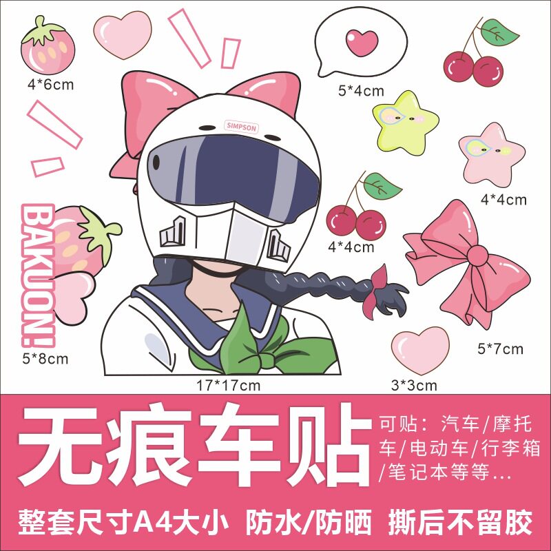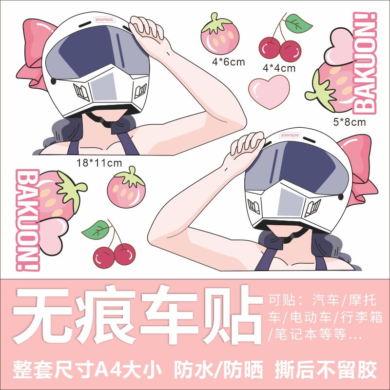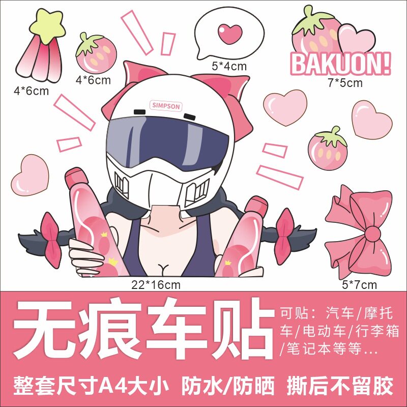 电动车贴纸机车少女卡通可爱爆音少女头盔装饰防水个性创意潮流贴