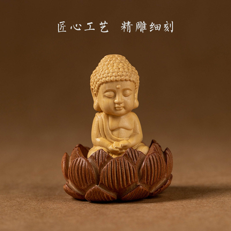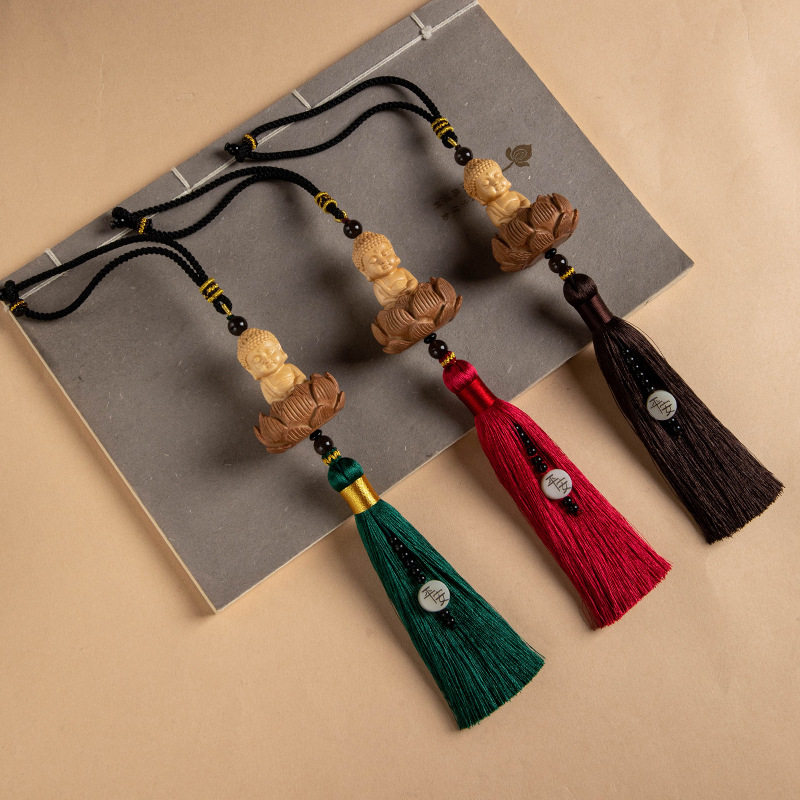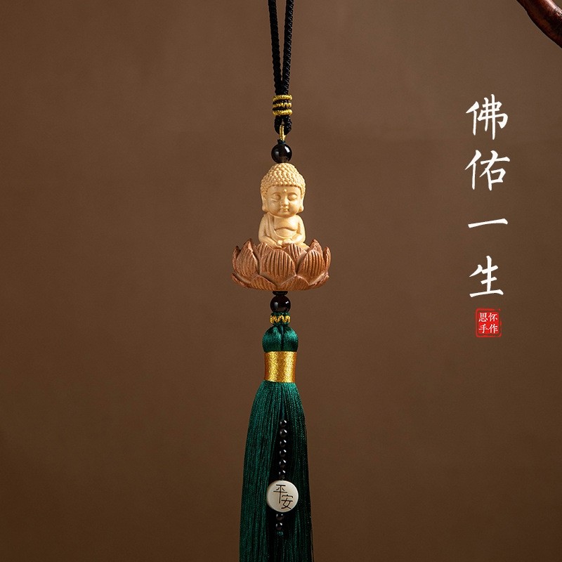黄杨木小佛汽车挂件 桃木莲台长流苏车内挂件饰品 平安车挂饰饰品