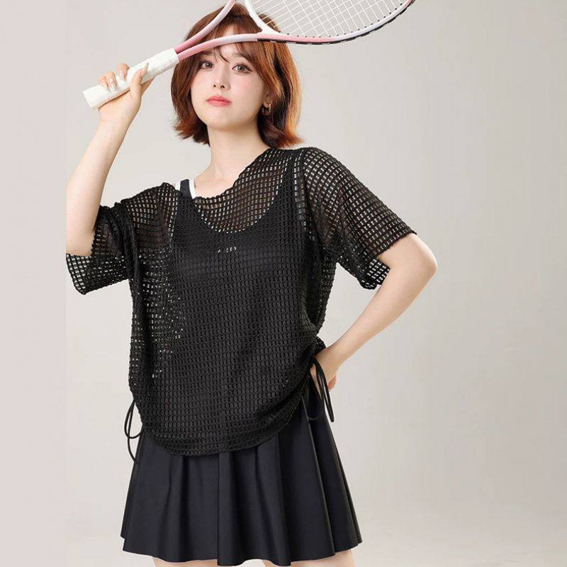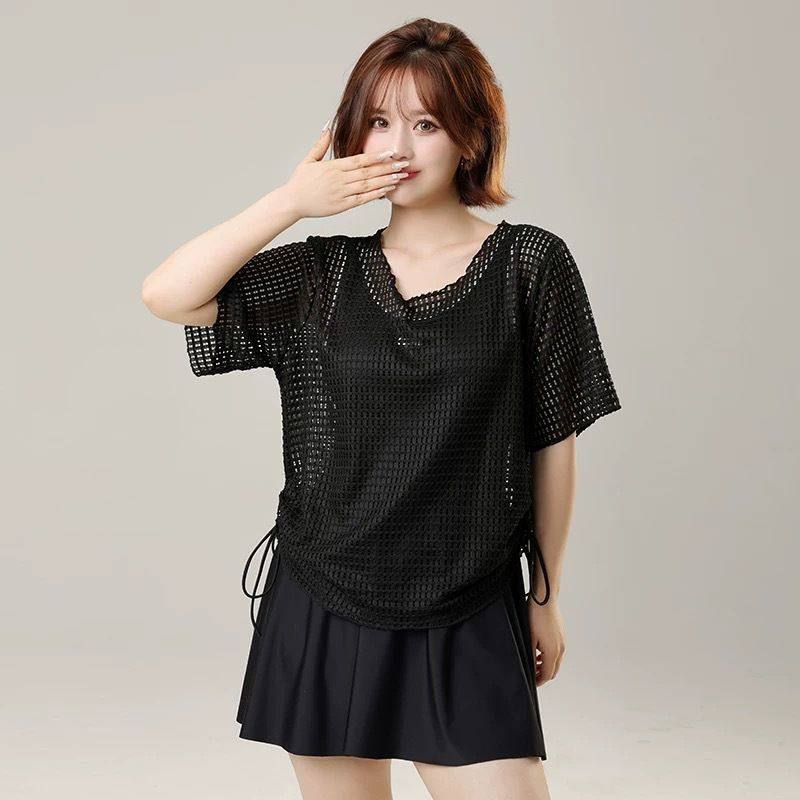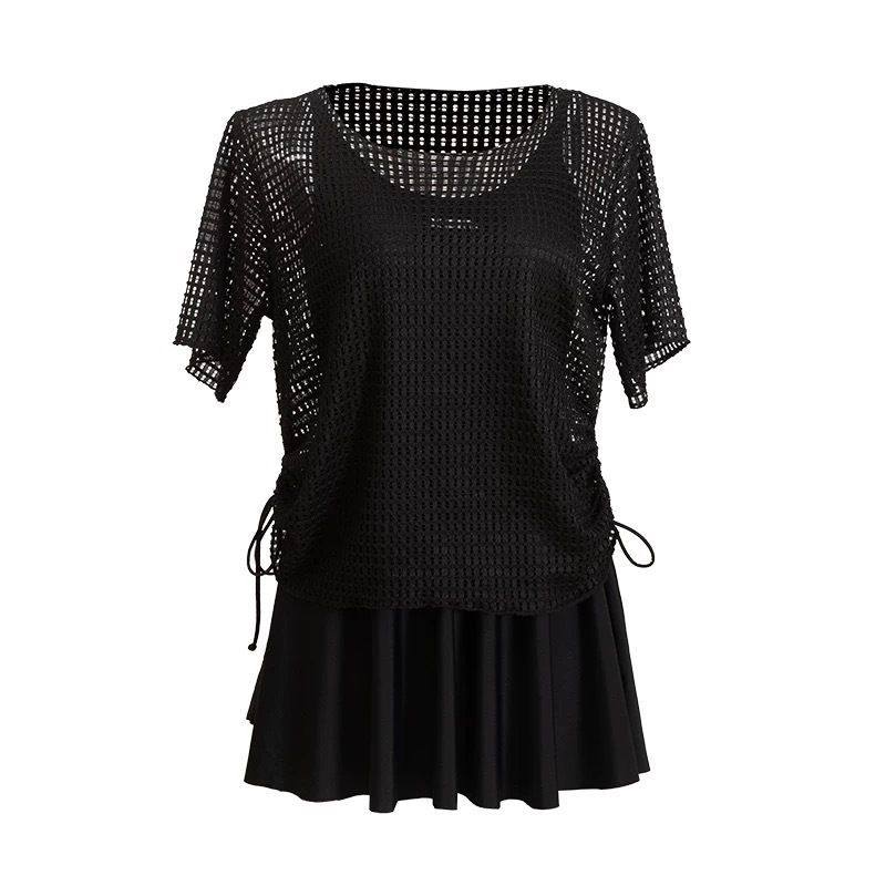 大码泳衣女微胖女孩罩衫遮肉显瘦胖mm保守泡温泉度假连体裙式泳装