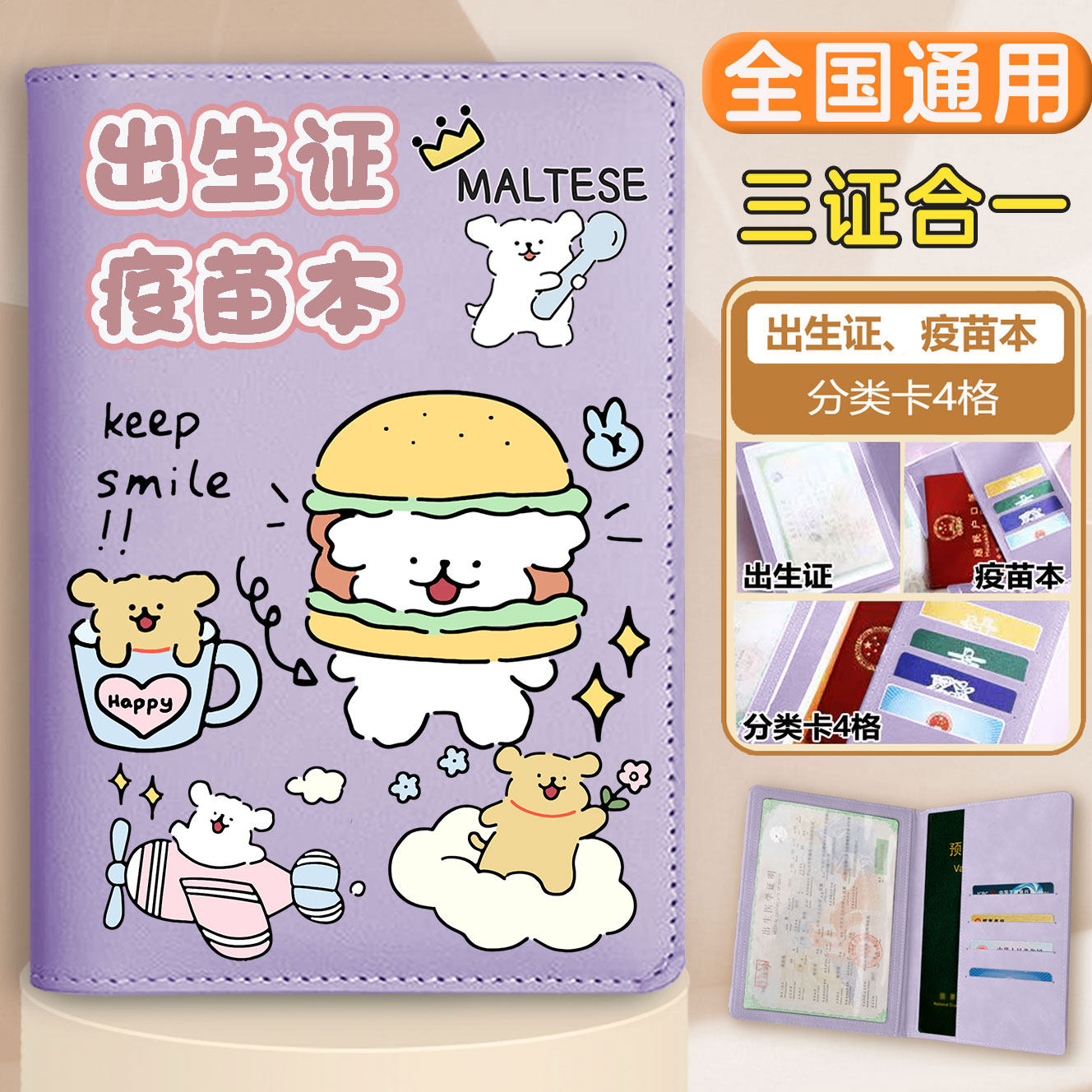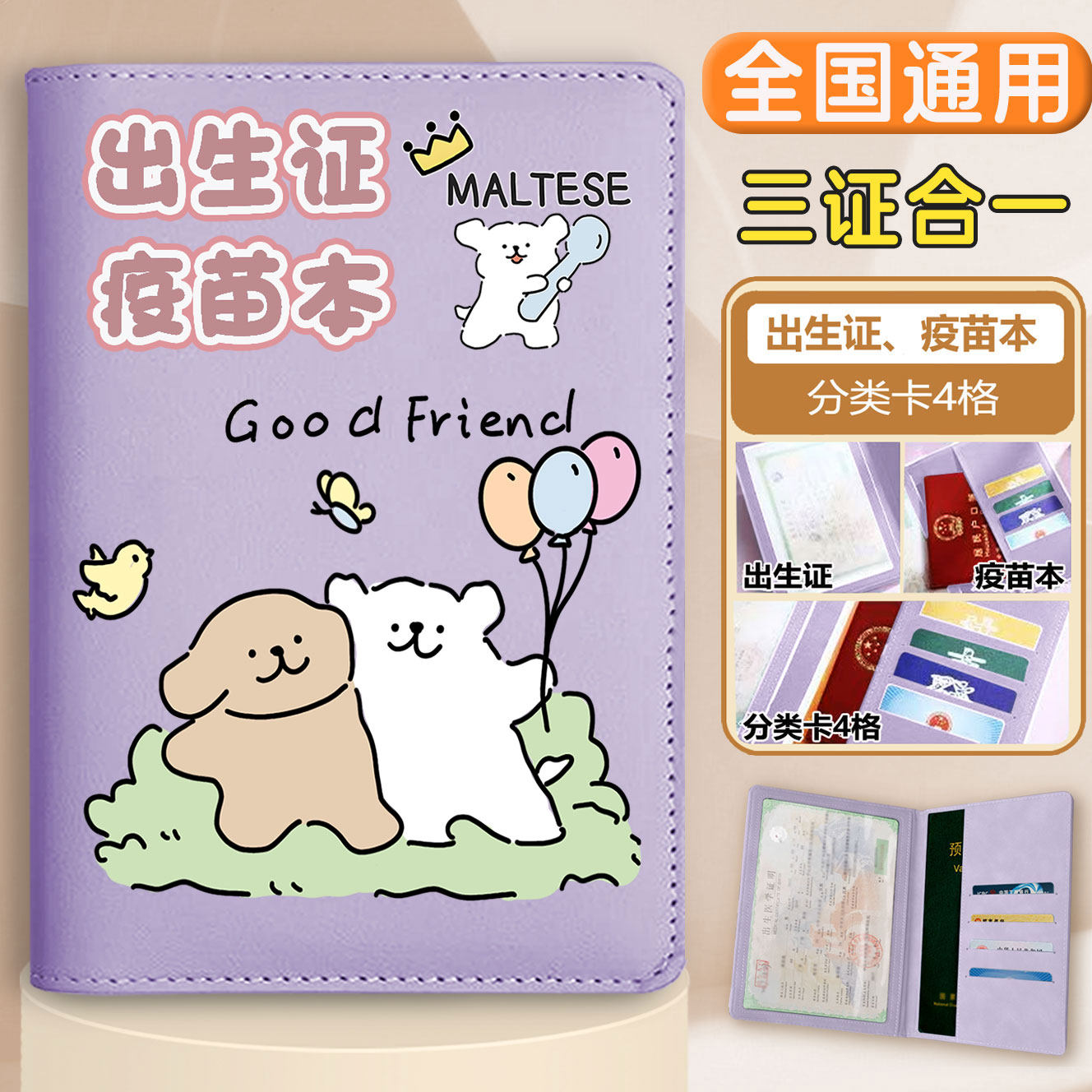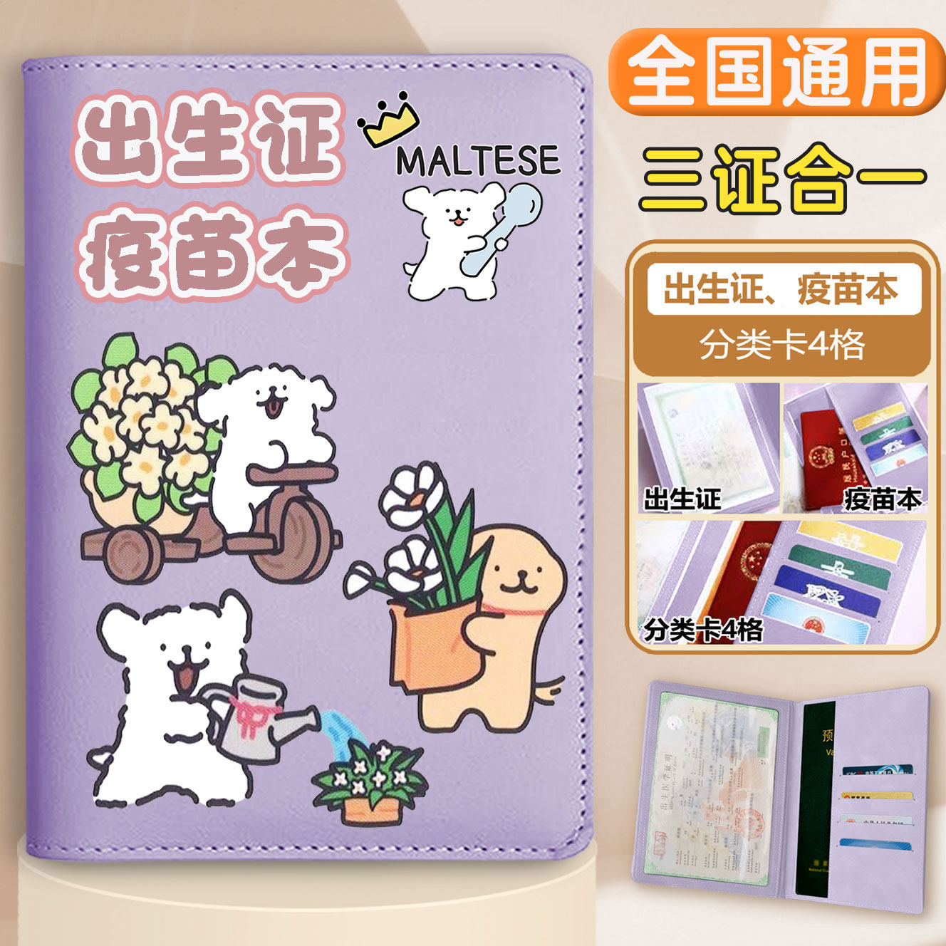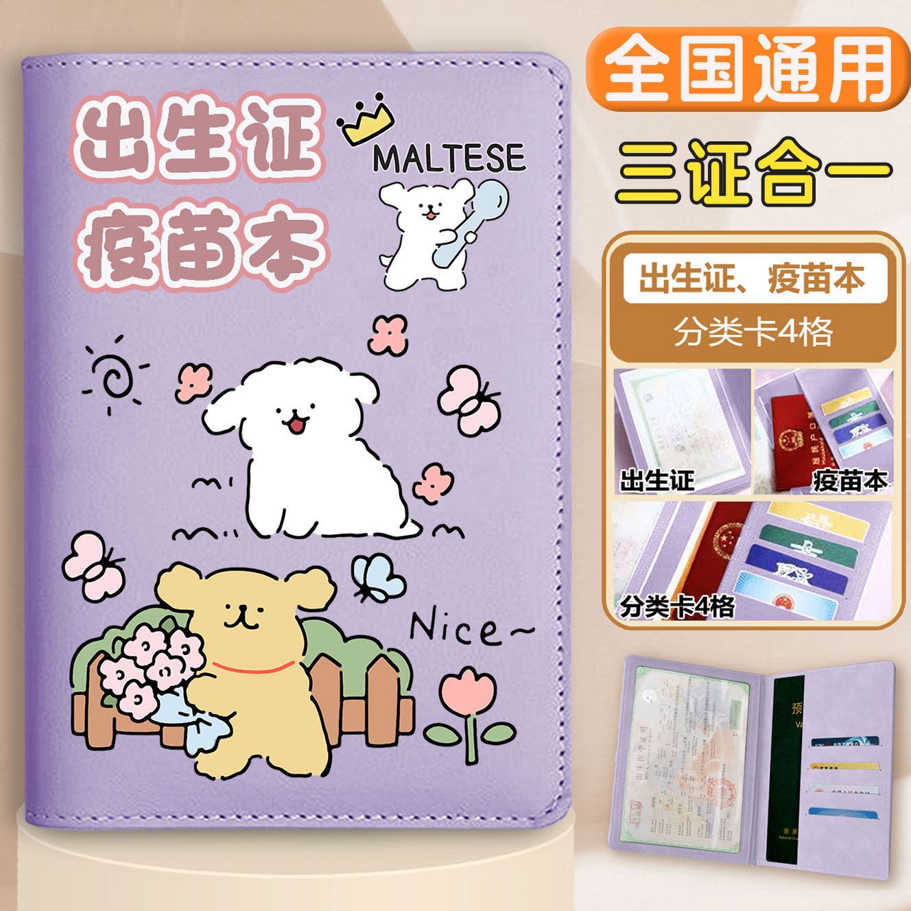 线条小狗出生证明保护套三合一女宝宝证件套预防接种疫苗本收纳套