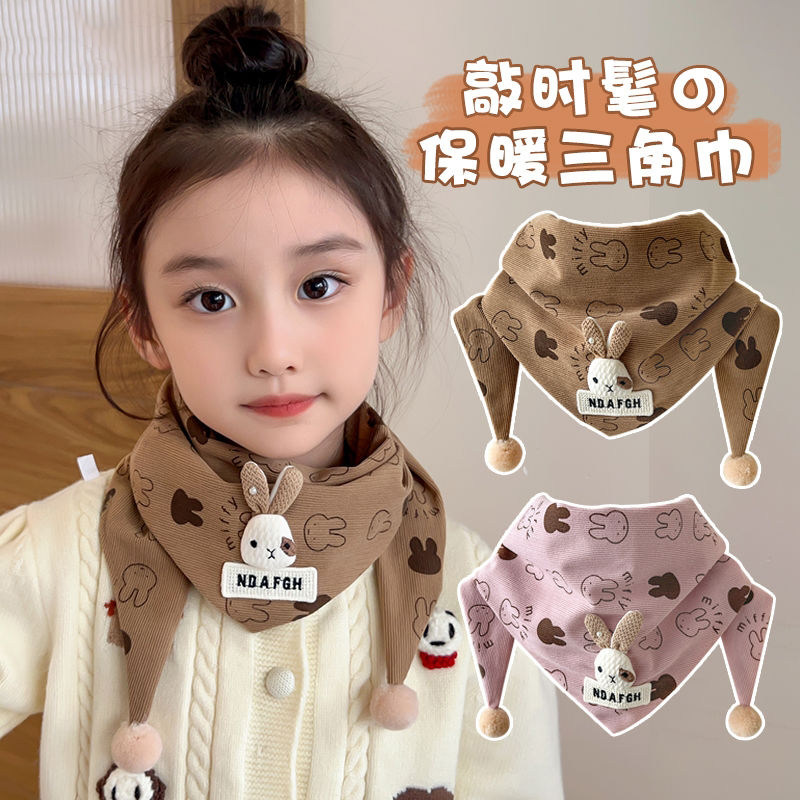 宝宝围巾秋冬季韩版婴儿小兔子三角巾春秋天男童女孩保暖防风围脖