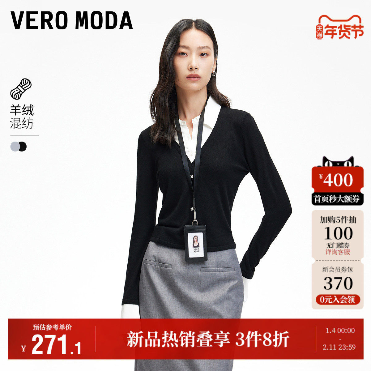 Vero Moda奥莱针织衫女2025秋冬新款MIU系拼接袖上衣毛衣气质通勤