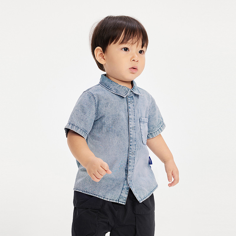 江南布衣婴童短袖衬衣洋气中袖衬衫领纯色夏男童婴儿jnbybyjnby