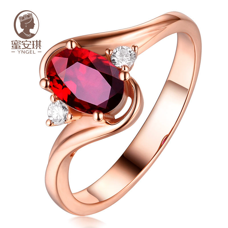 Yngel/蜜安琪珠宝天然鸽血红宝石戒指女18k金玫瑰金彩色宝石定制