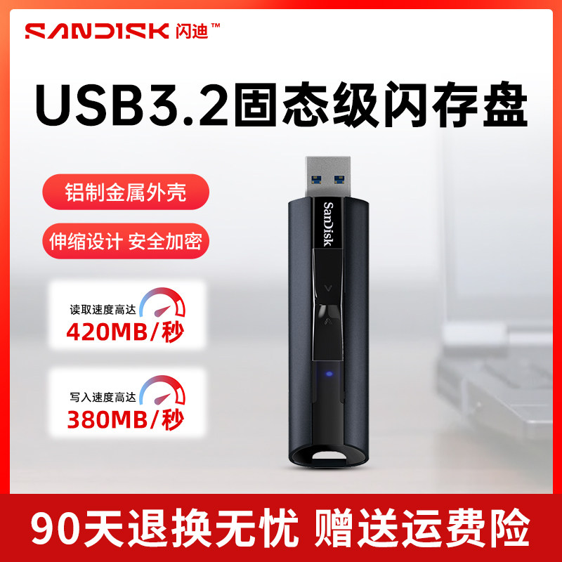 闪迪固态u盘128g优盘cz880高速usb3.2接口固态3.0加密打碟u盘