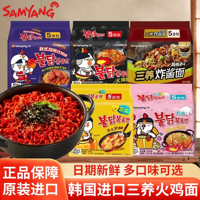 三养火鸡面韩国奶油炸酱拌泡菜咖喱蟹方便面韩式泡面拉面芝士袋装