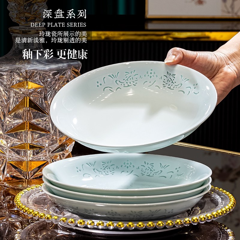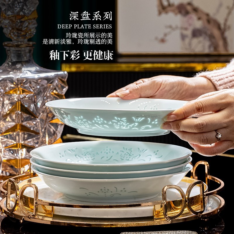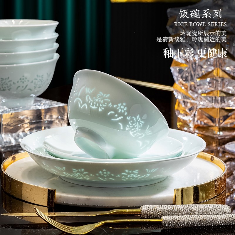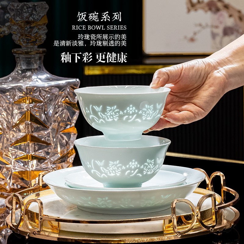 陶瓷景德镇釉下彩餐具碗盘组合家用轻奢高级感高温瓷玲珑碗碟