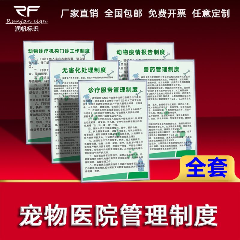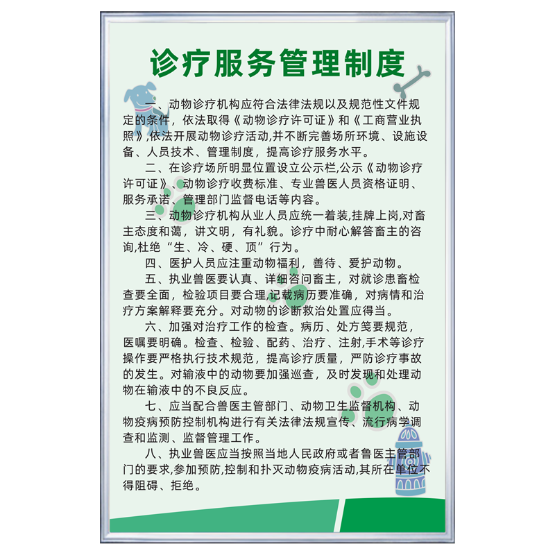 宠物医院管理制度牌卫生消毒兽医处方动物疫情报告人员岗位职责行为规范诊疗设备医疗事故人员培训规章制度