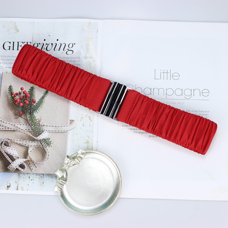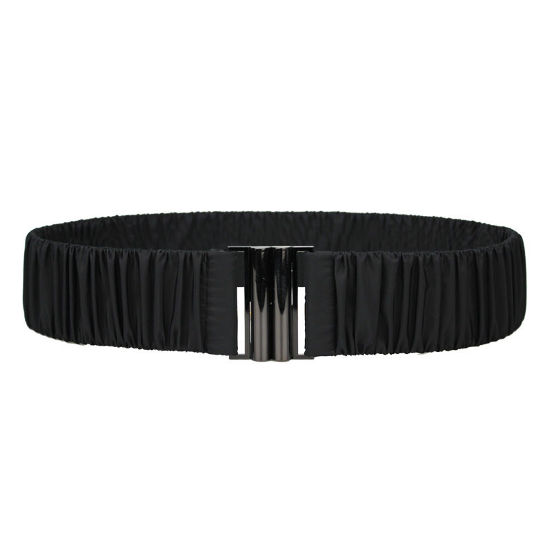 弹力配饰长款羽绒服腰带黑色束腰银扣配件松紧收腰女棉服棉袄皮带