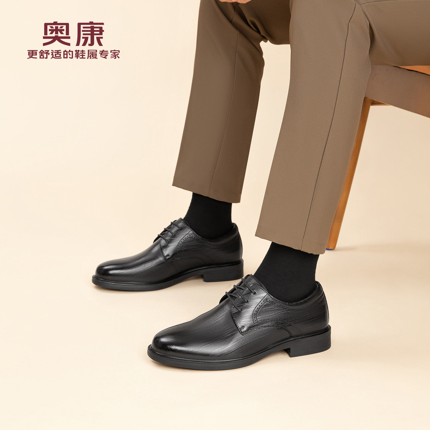 奥康 男鞋2026春季新款商务正装男士皮鞋真皮压纹德比鞋N