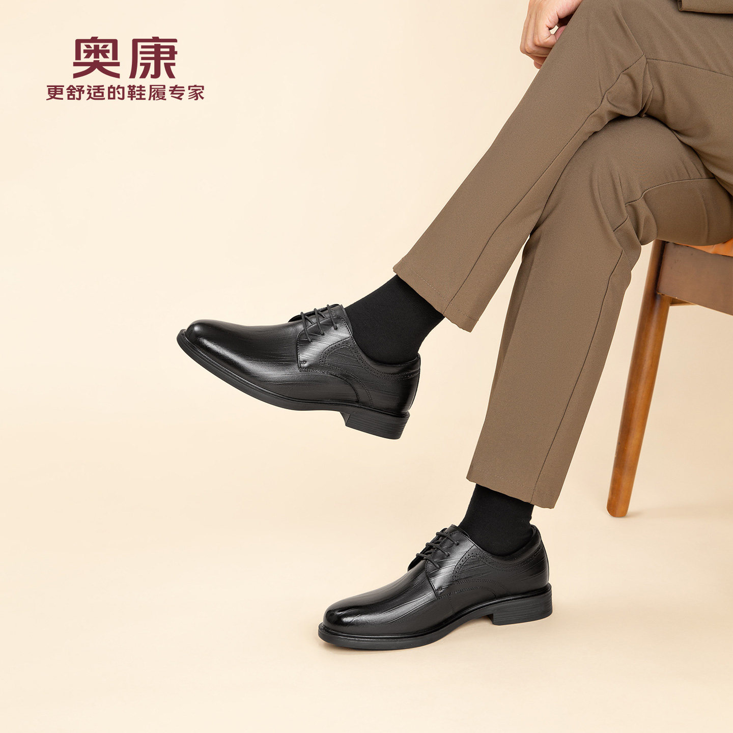 【内增高】奥康男鞋春秋季新款商务德比鞋男真皮舒适通勤男士皮鞋