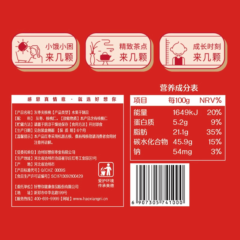【烈儿超值年货节】好想你灰枣夹核桃礼盒550g*3箱特产大礼包红枣