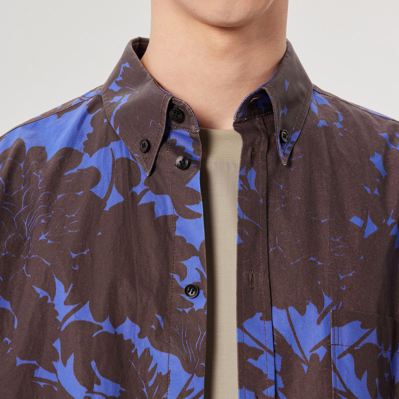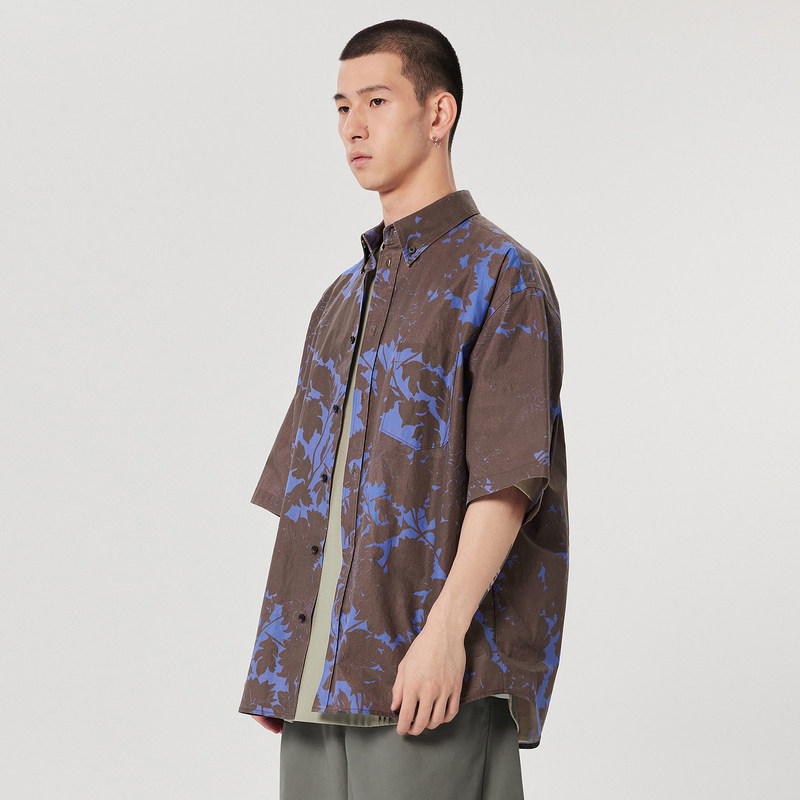 速写outlets奥莱男装早春折扣新款衬衣撞色印花衬衫短袖休闲舒适