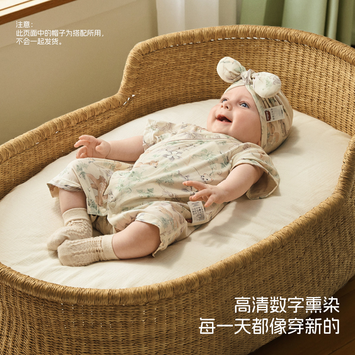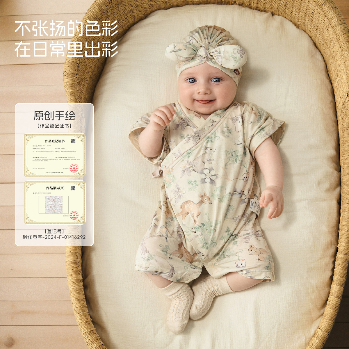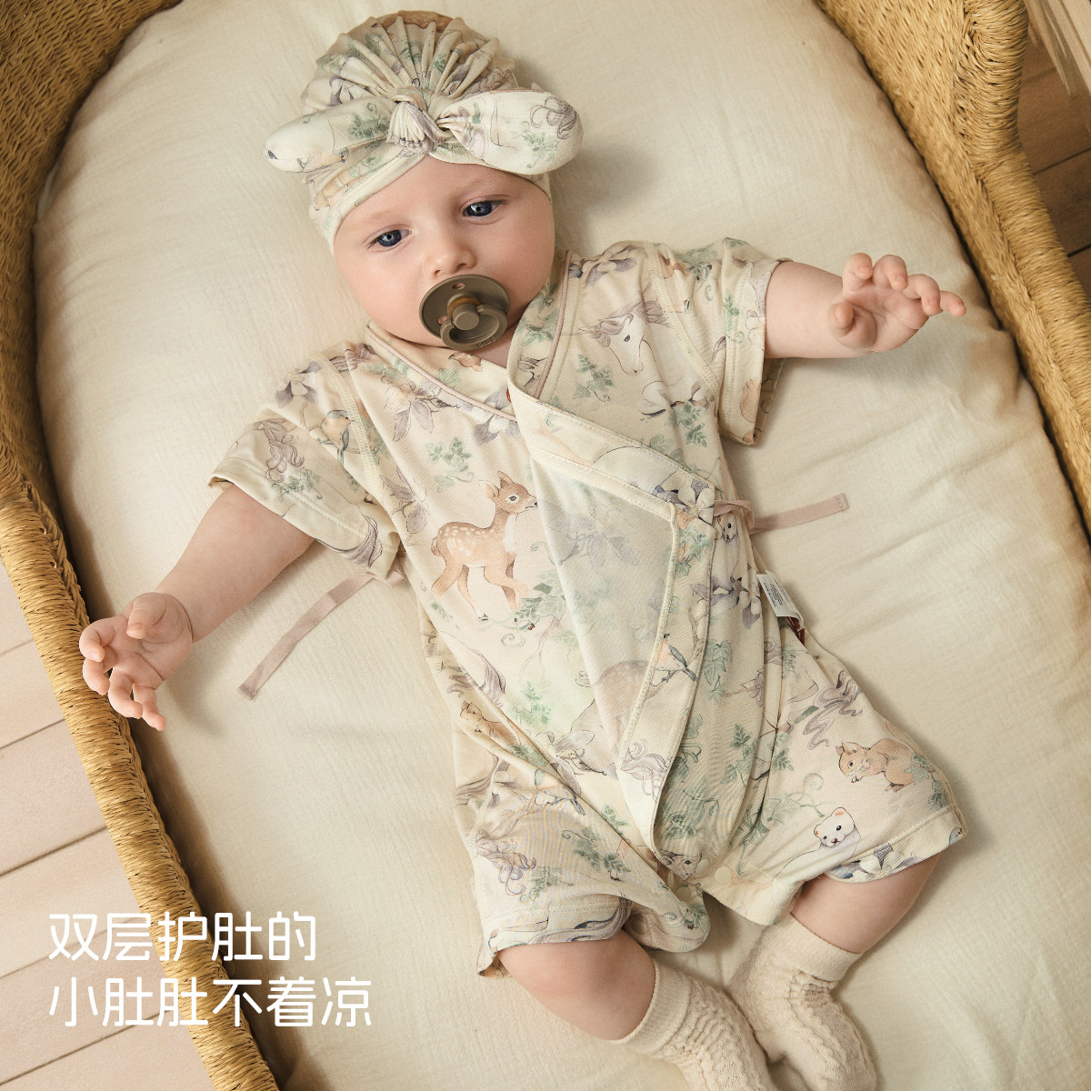 aqpa爱帕新生儿婴儿衣服莫代尔夏季短袖连体衣哈衣爬服