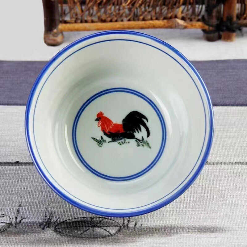 陶瓷之乡怀旧老式青花瓷手绘复古高脚鸡公碗仿古家用加厚防烫餐具