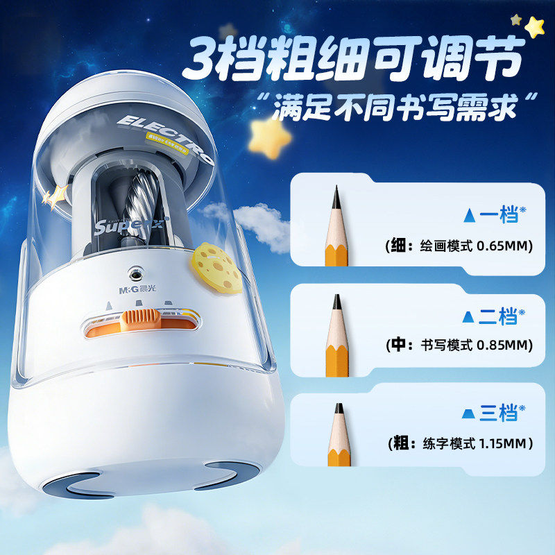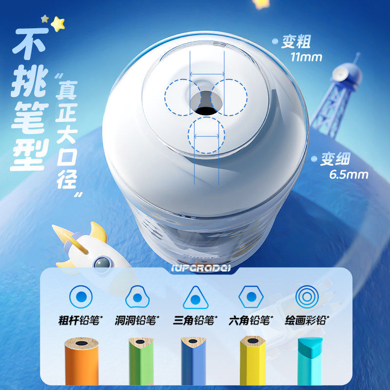 晨光大口径全自动削笔器小学生专用电动充电转笔刀男孩女孩进削笔机幼儿园儿童粗杆三角铅笔卷笔刀新年礼物