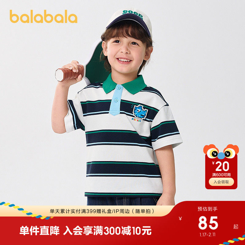 巴拉巴拉儿童短袖t恤条纹POLO衫男童装2025夏装新款休闲百搭上衣