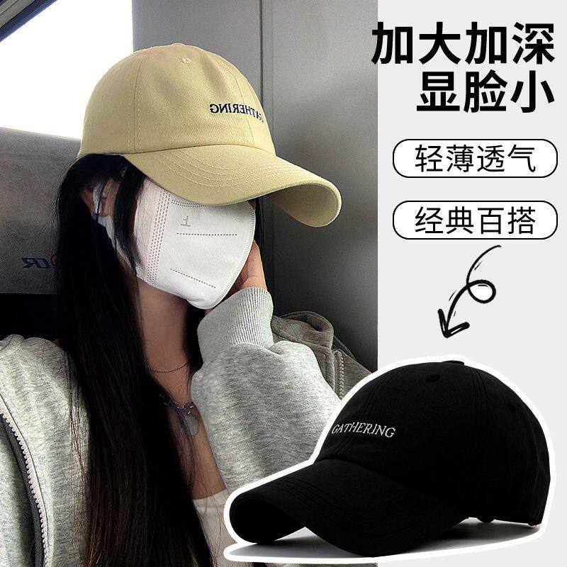 美式复古字母灰色棒球帽女高级感宽檐大头围显脸小百搭鸭舌帽子男