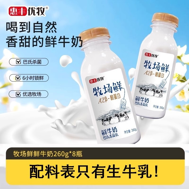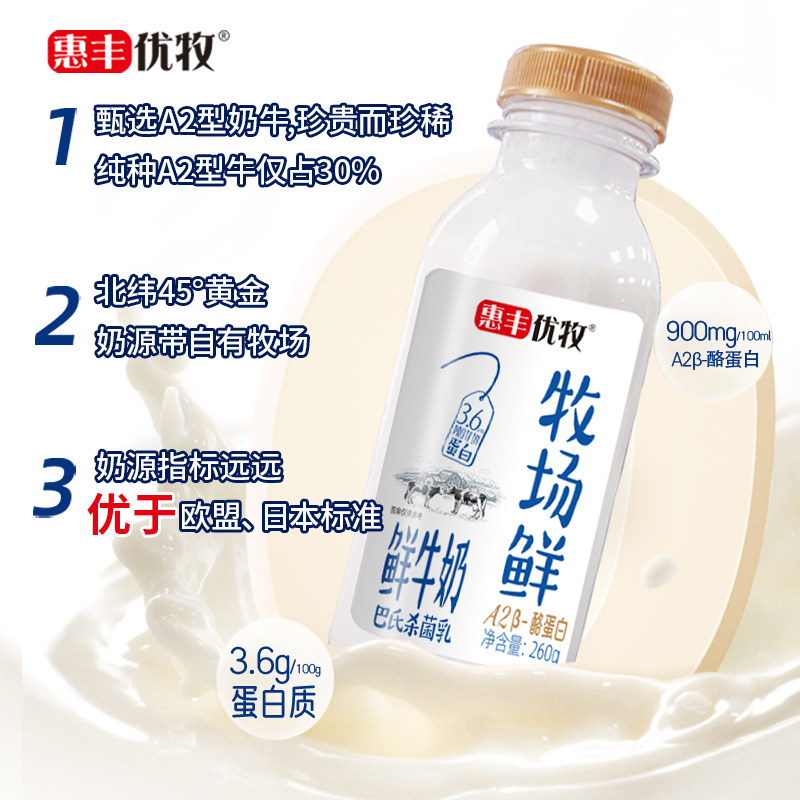 惠丰优牧牧场鲜桶装鲜奶3.6g蛋白纯牛奶低温学生牛奶