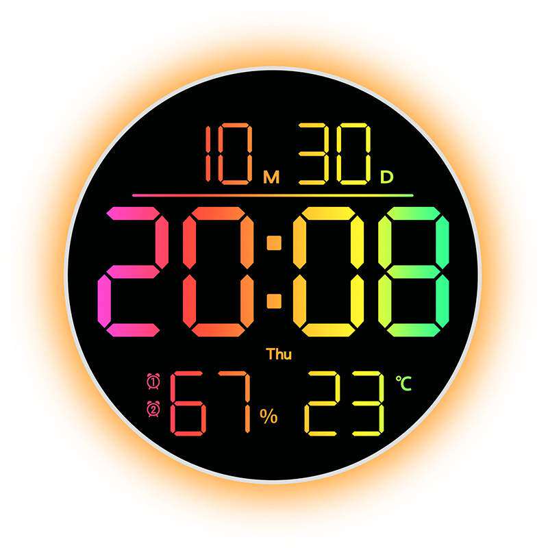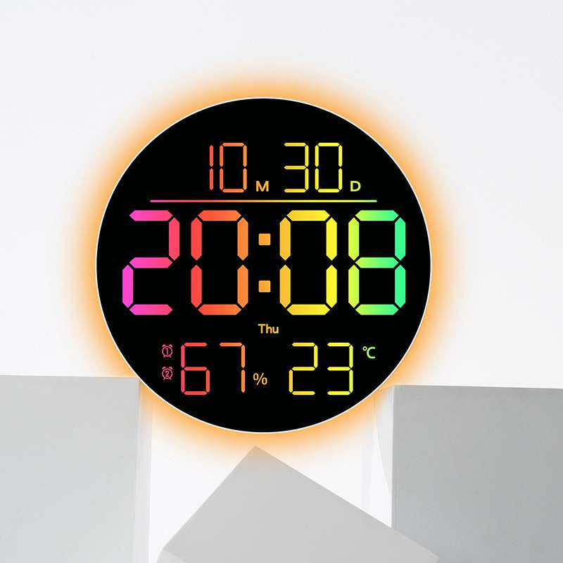 跨境新品RGB客厅挂钟大字体变色时钟氛围灯多功能家居家饰6695R