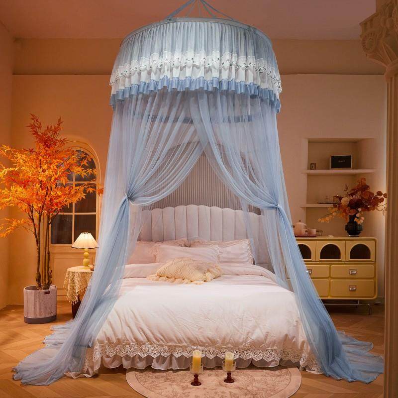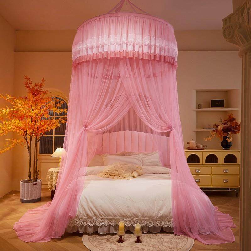 公主风吊顶蚊帐三开门床幔免安装吸盘防蚊加密帐纱通用圆顶蚊帐