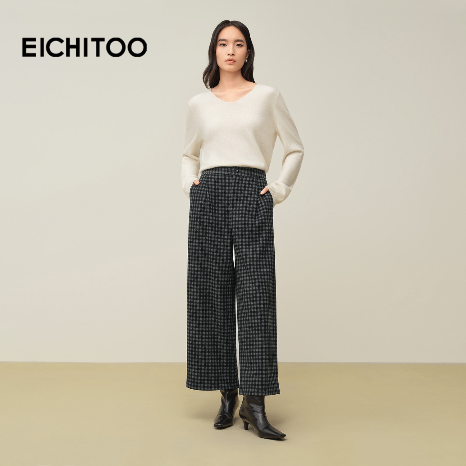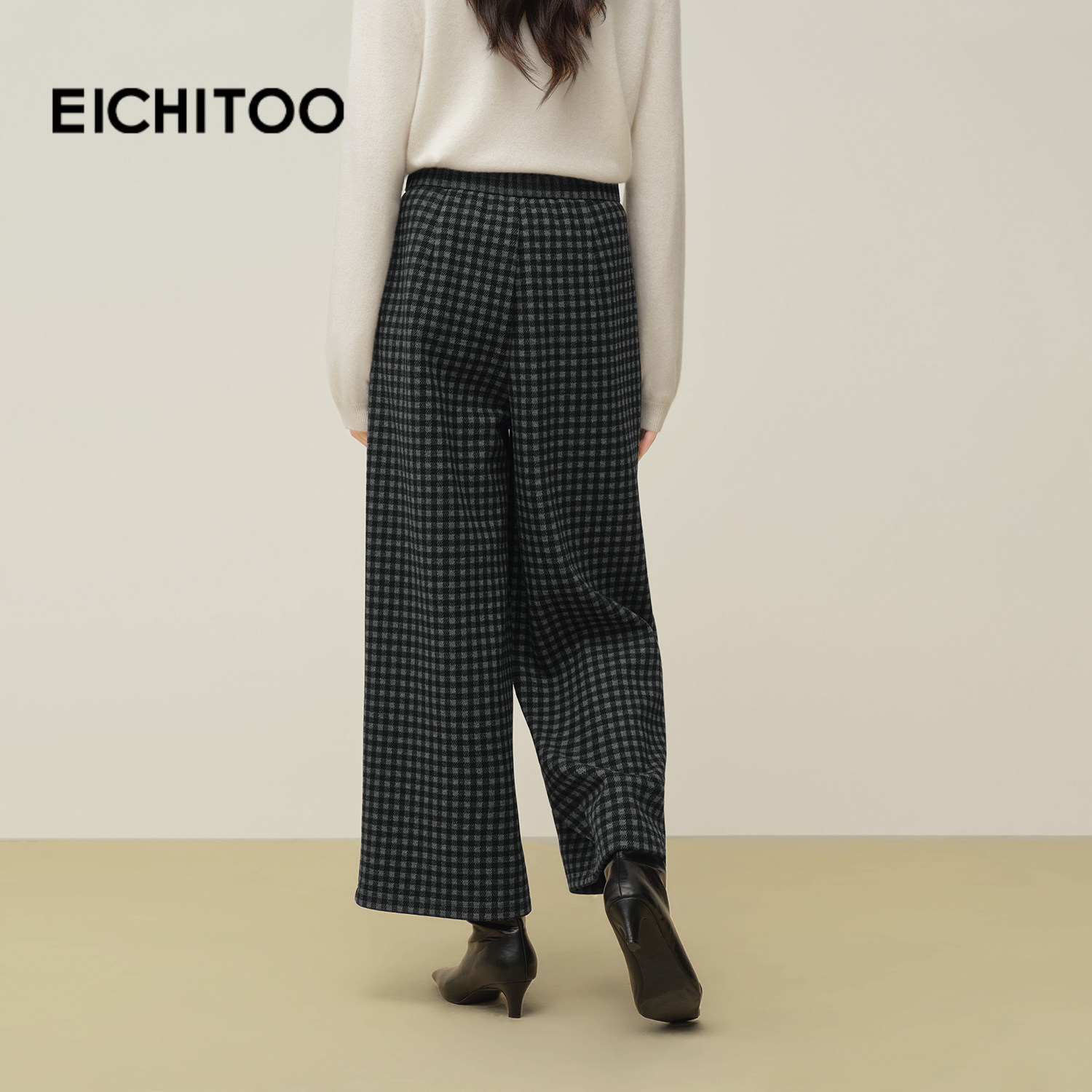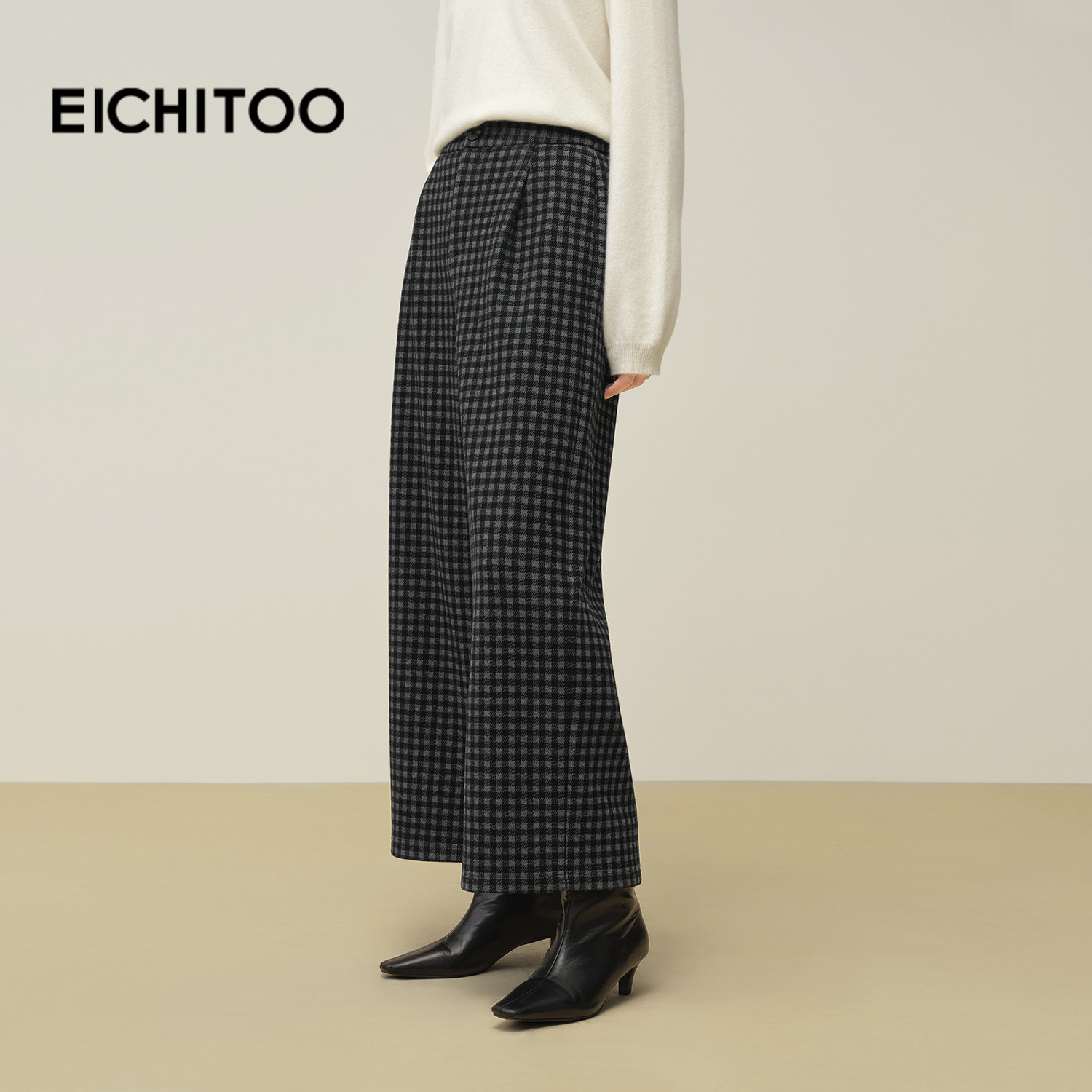 爱居兔复古格纹休闲裤女2025年冬季新款窄版阔腿裤显瘦显高直筒裤
