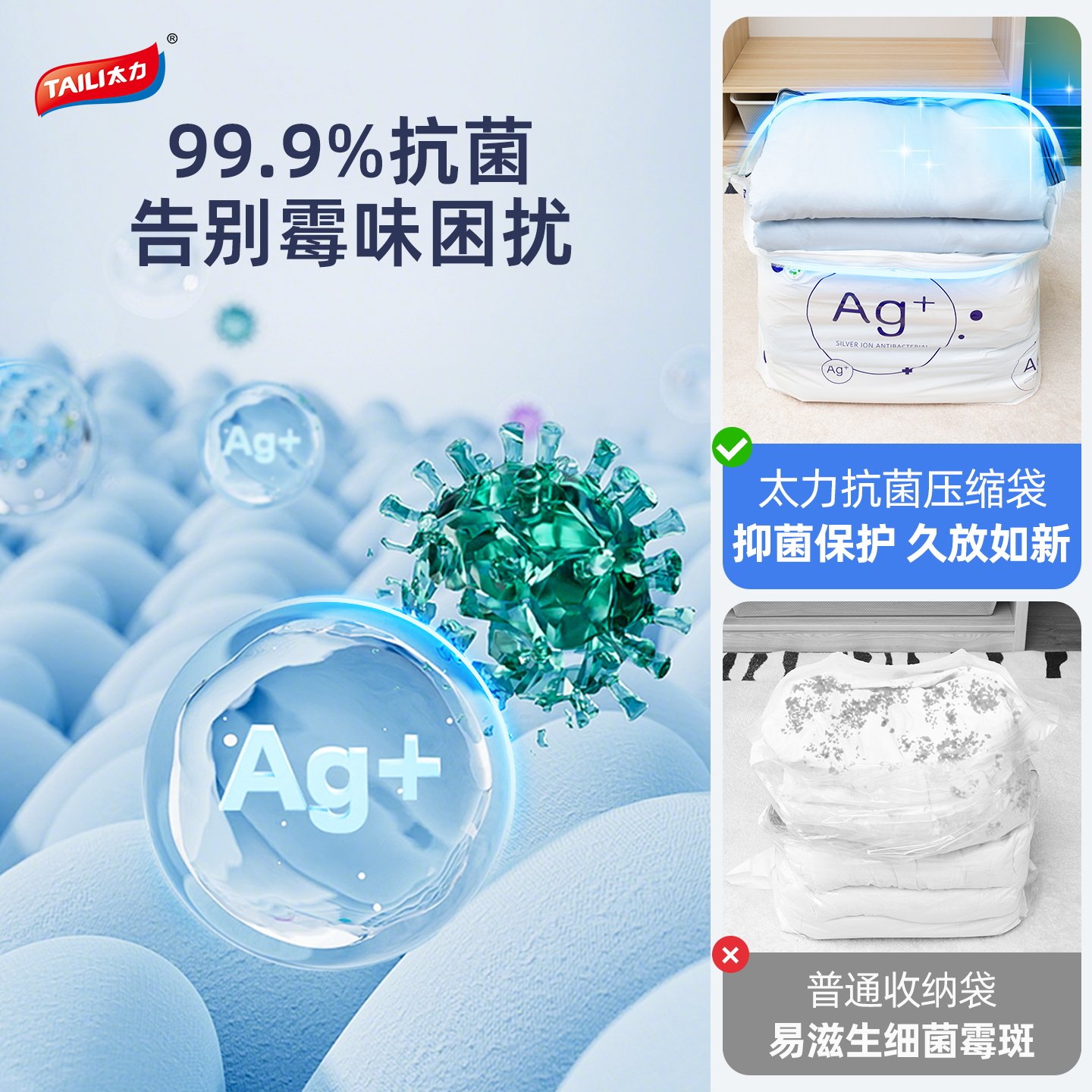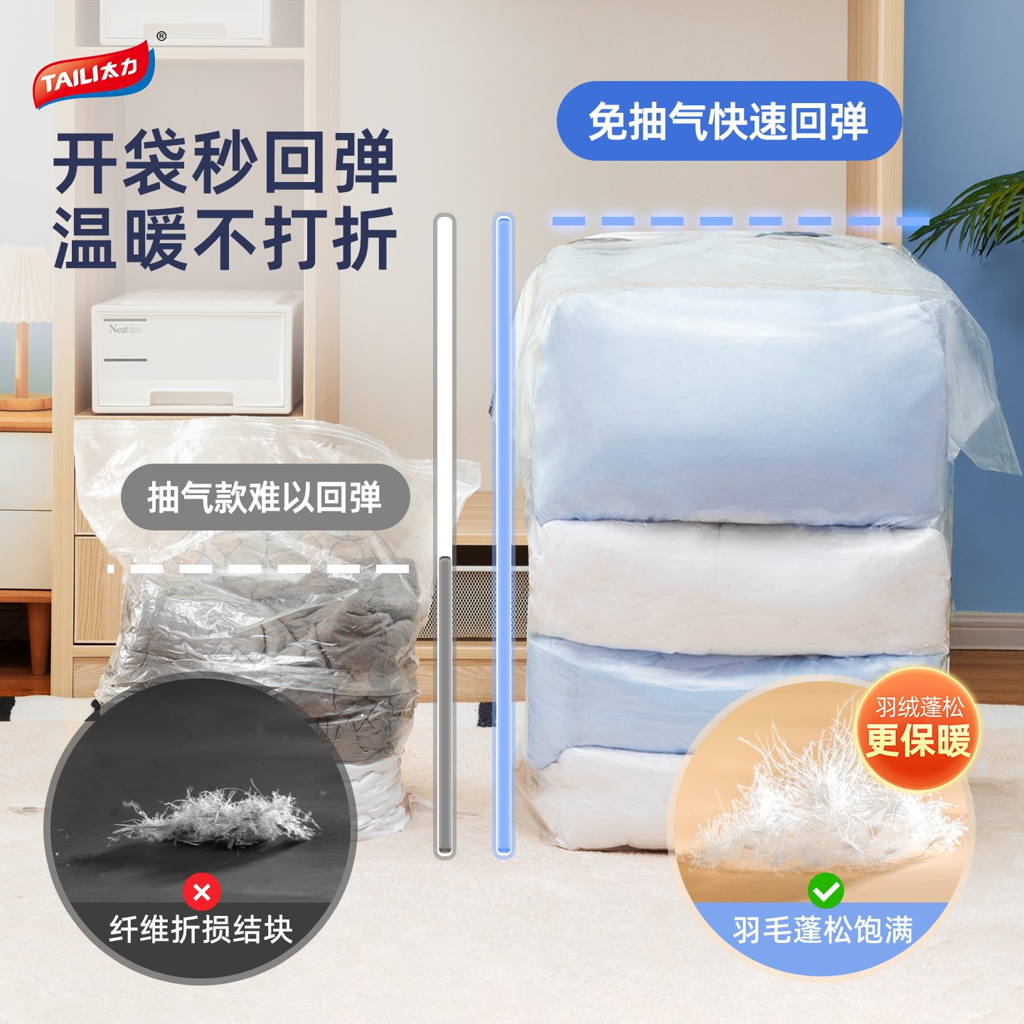 太力真空收纳压缩袋装被子衣服衣物羽绒服棉被专用袋子抗菌免抽气