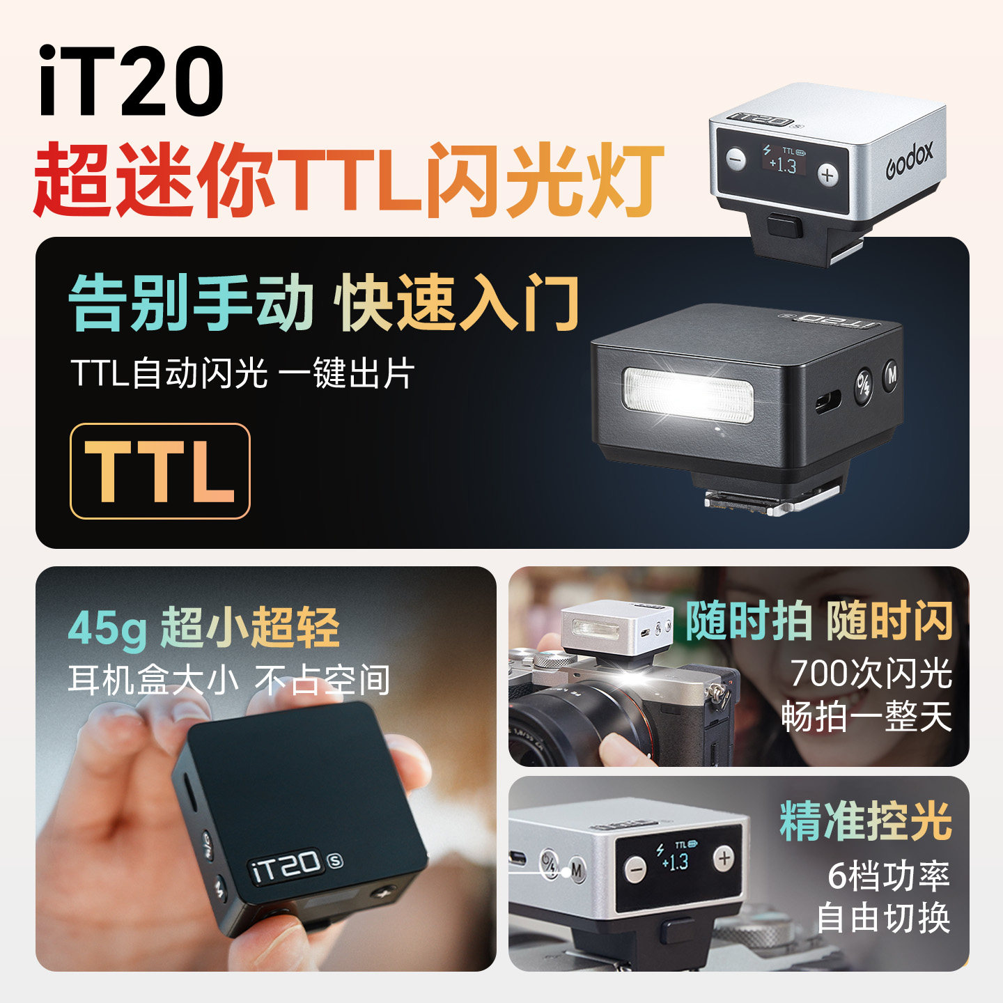 【理光gr3gr4】神牛iT20iT22迷你相机闪光灯TTL微单单反机顶灯外置热靴补光灯索尼A7M4尼康ZFC富士XT5x100vi