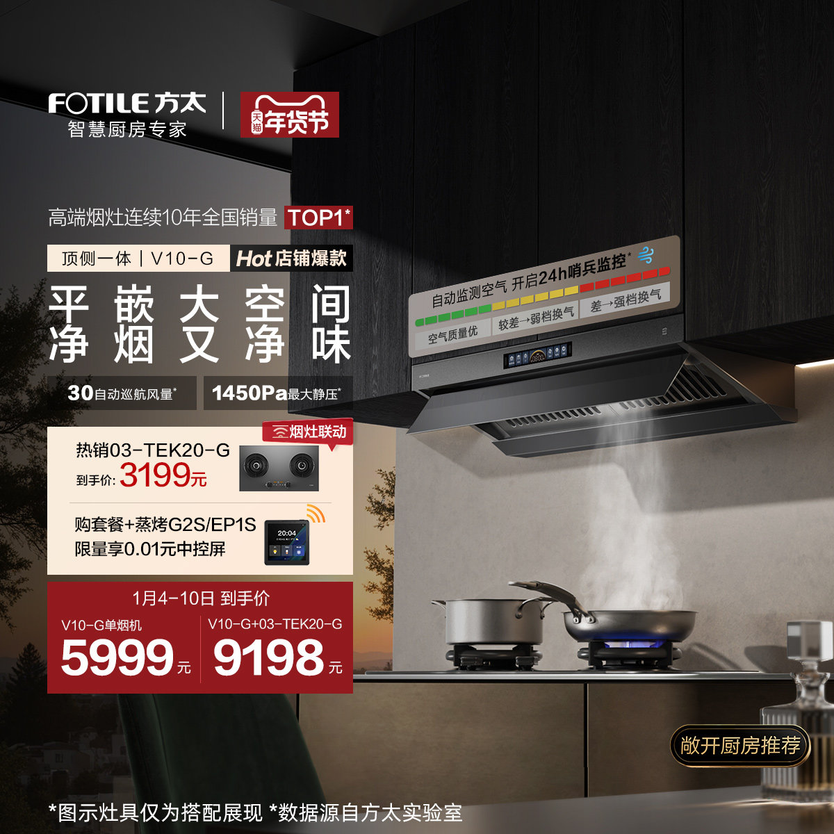 [顶侧一体MVP]方太V10抽吸油烟机家用厨房以旧换新补贴官方旗舰店