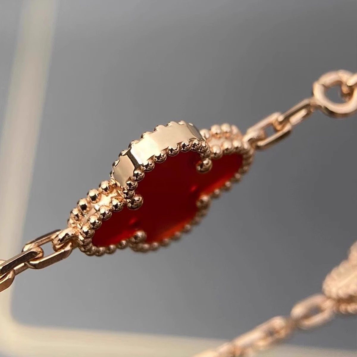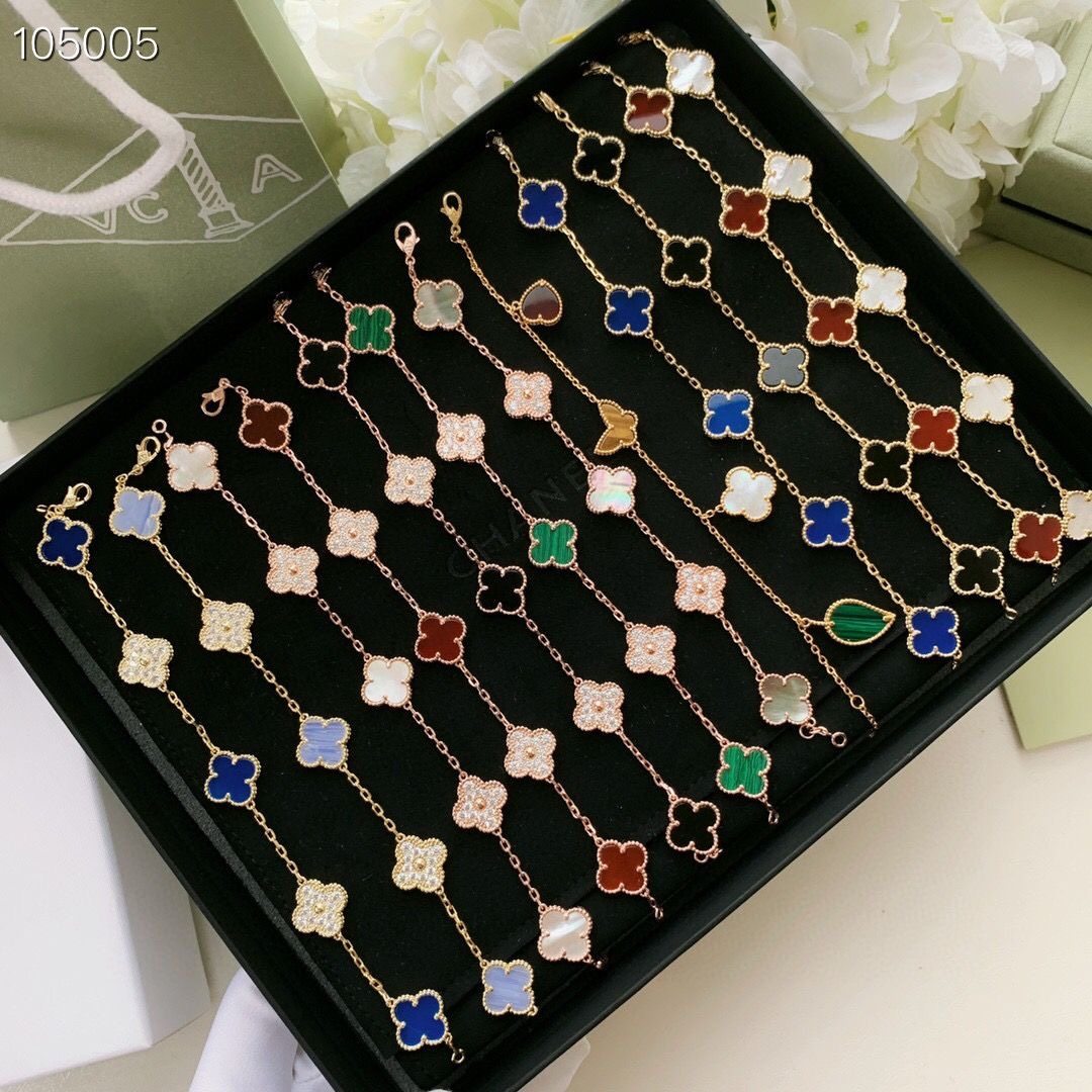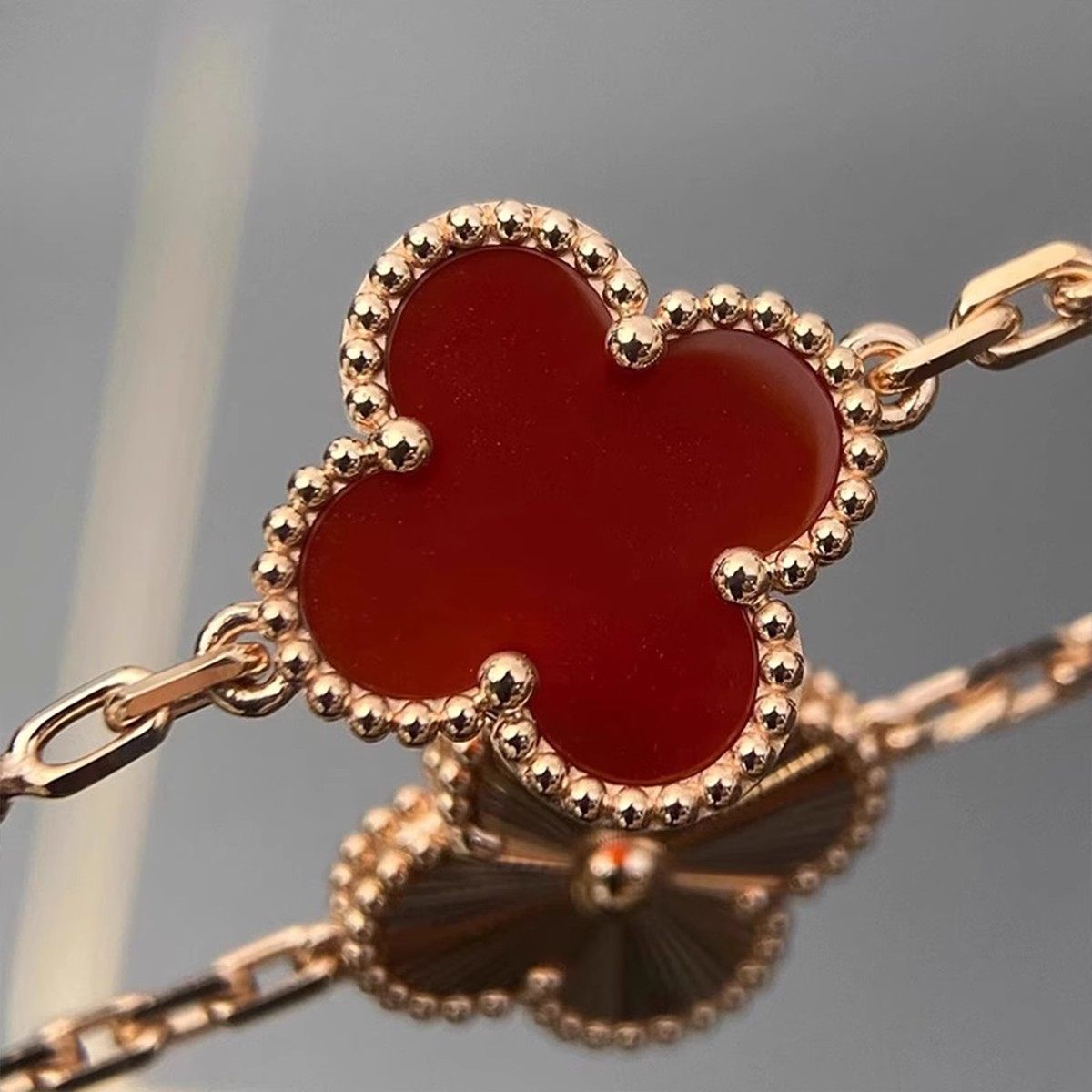 高版本四叶草红玛瑙石五花手链女幸运玫瑰金白金色黄金贝母紫玉髓