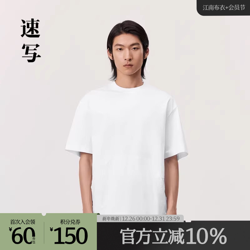 速写奥莱outlets男装春夏折扣新款T恤宽松圆领短袖休闲上衣潮流