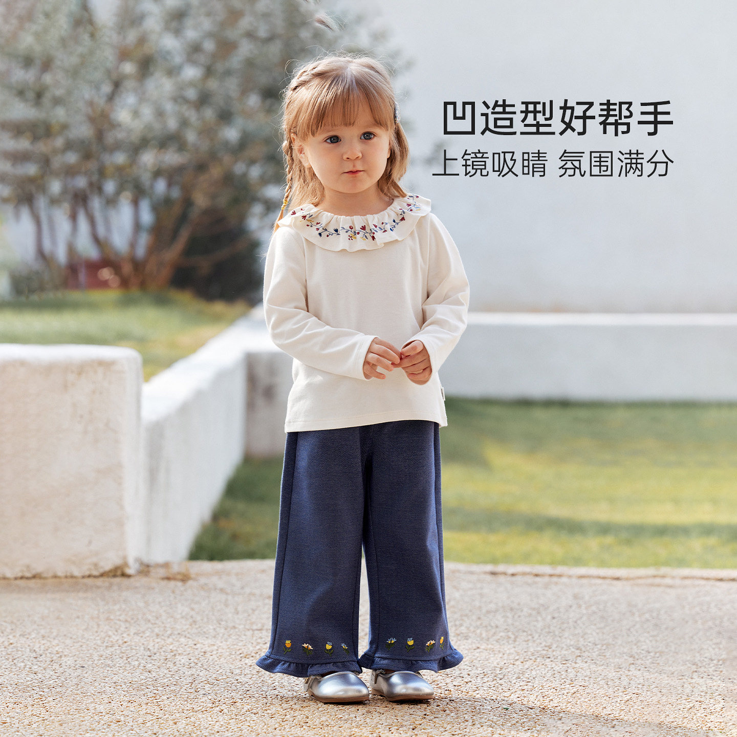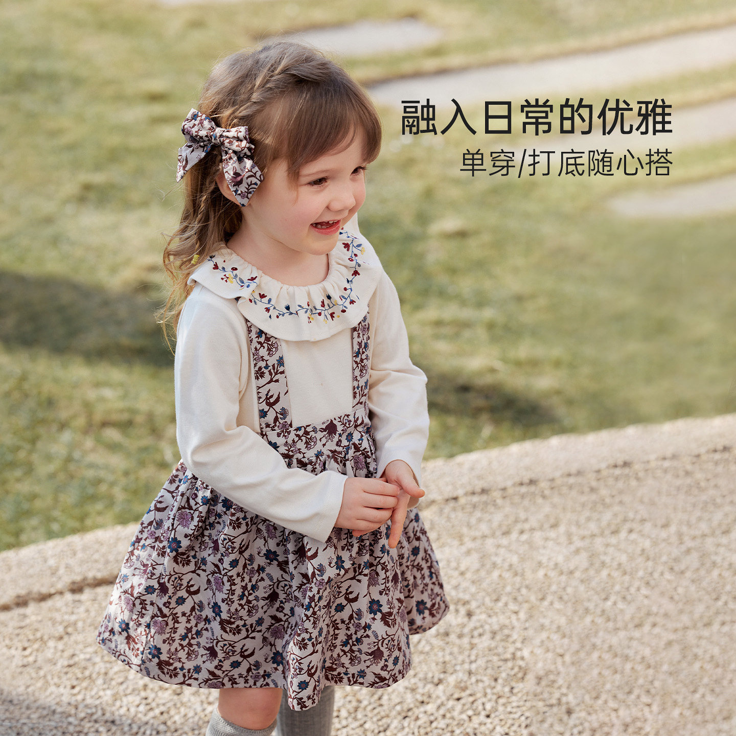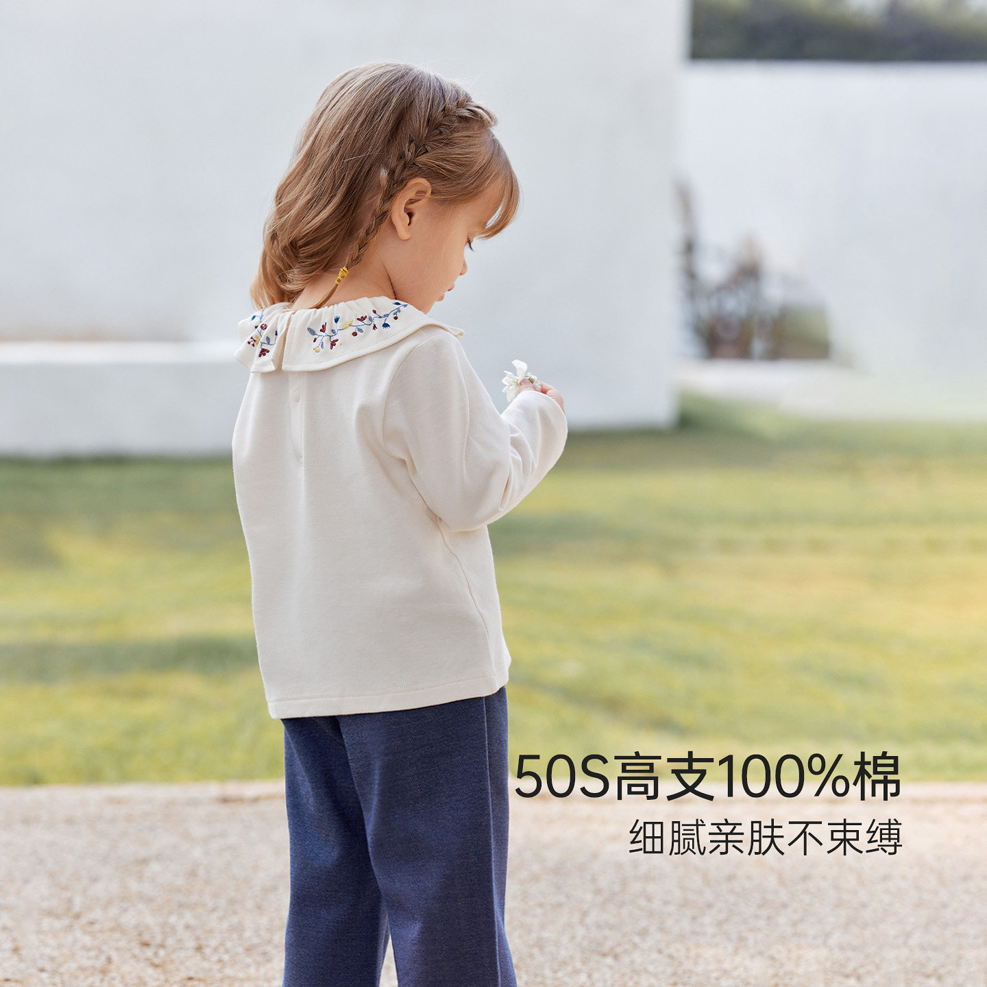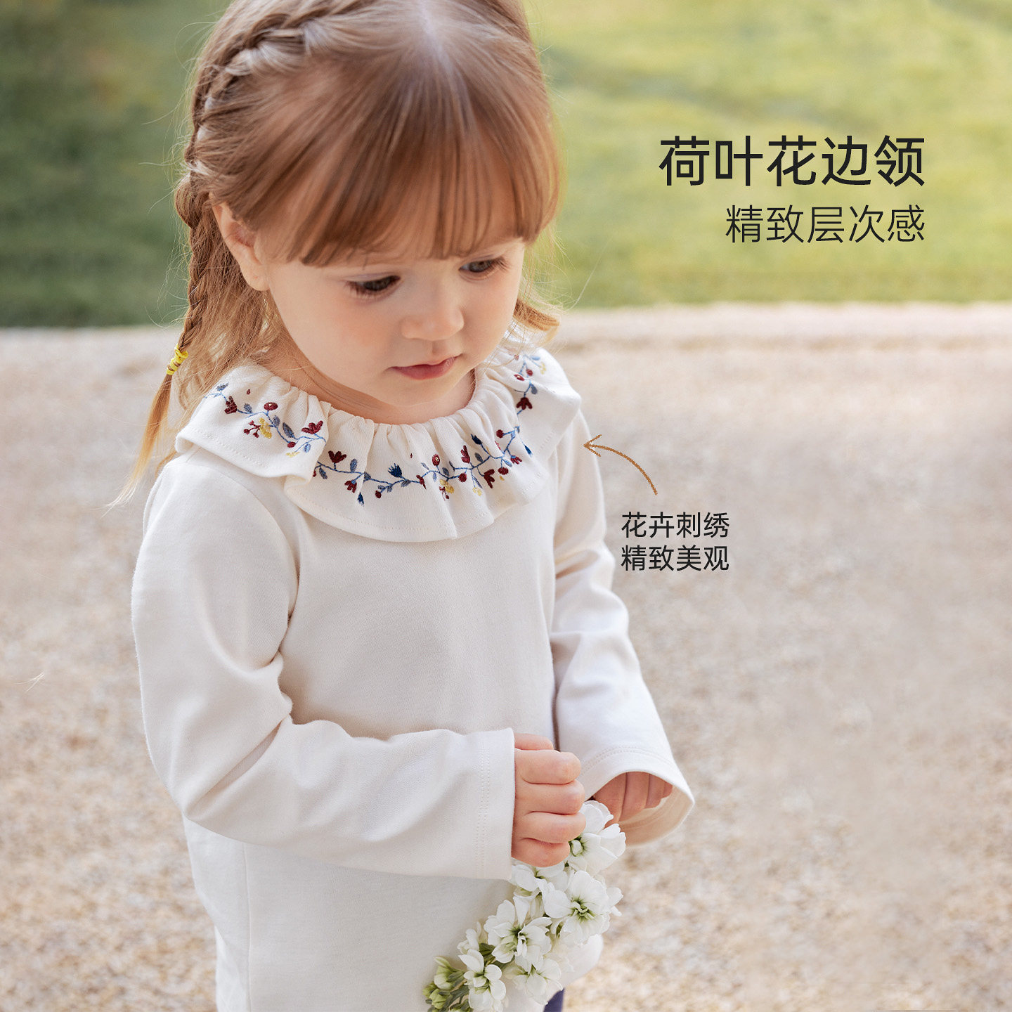 babylove女宝宝春秋季纯棉长袖T恤婴儿花边领洋气上衣百搭打底衫