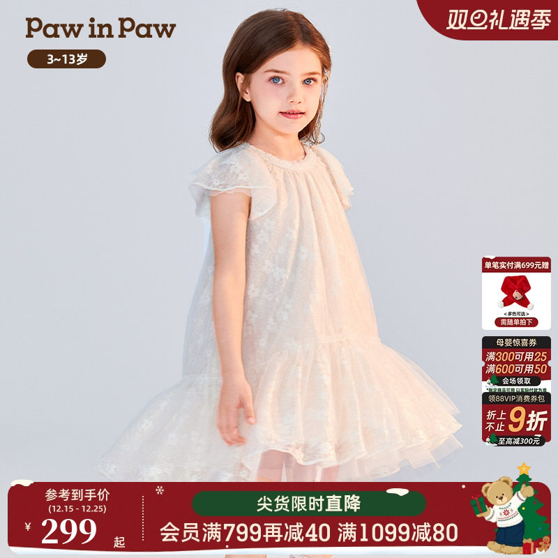 【晶耀系列】PawinPaw卡通小熊童装女童蕾丝公主连衣裙礼服裙