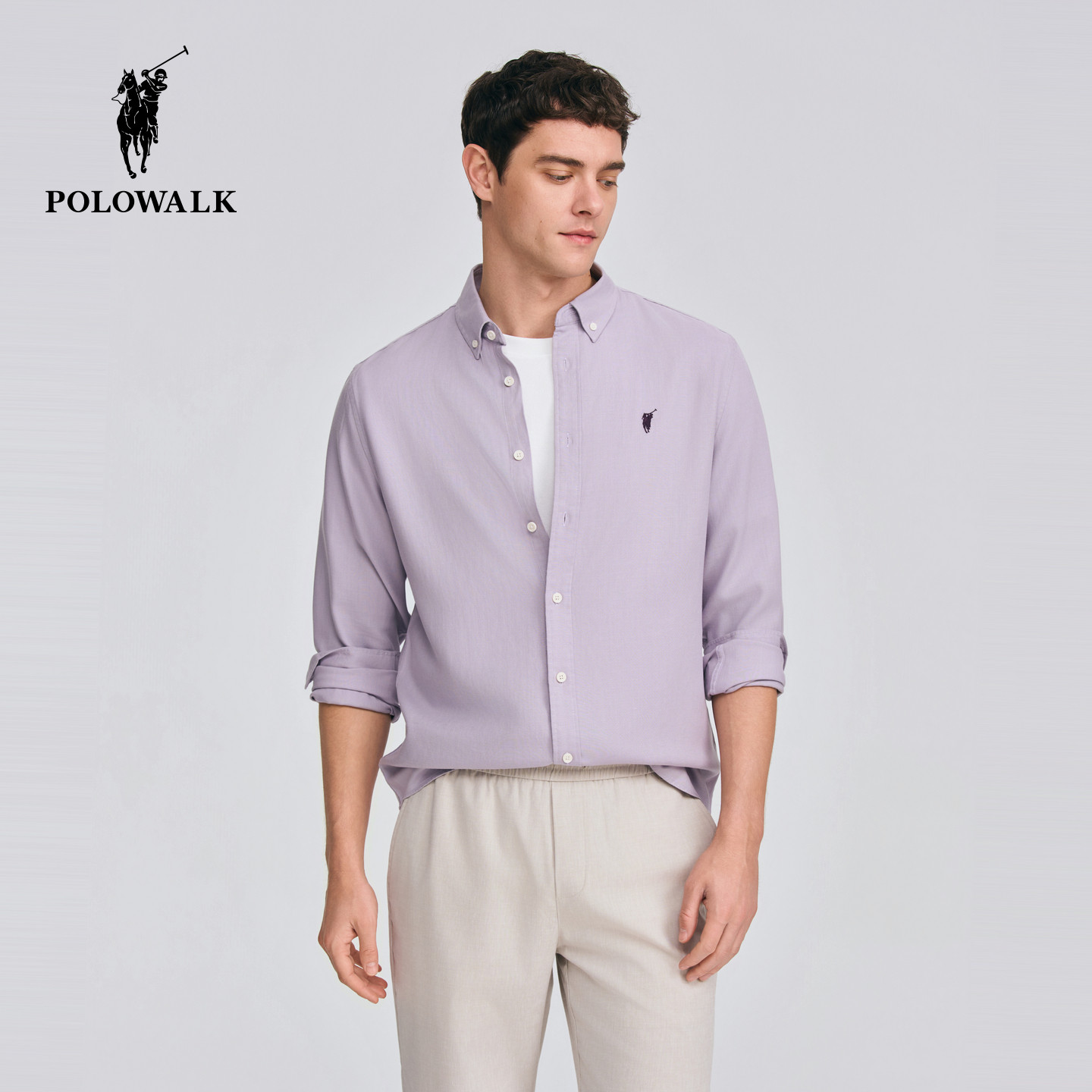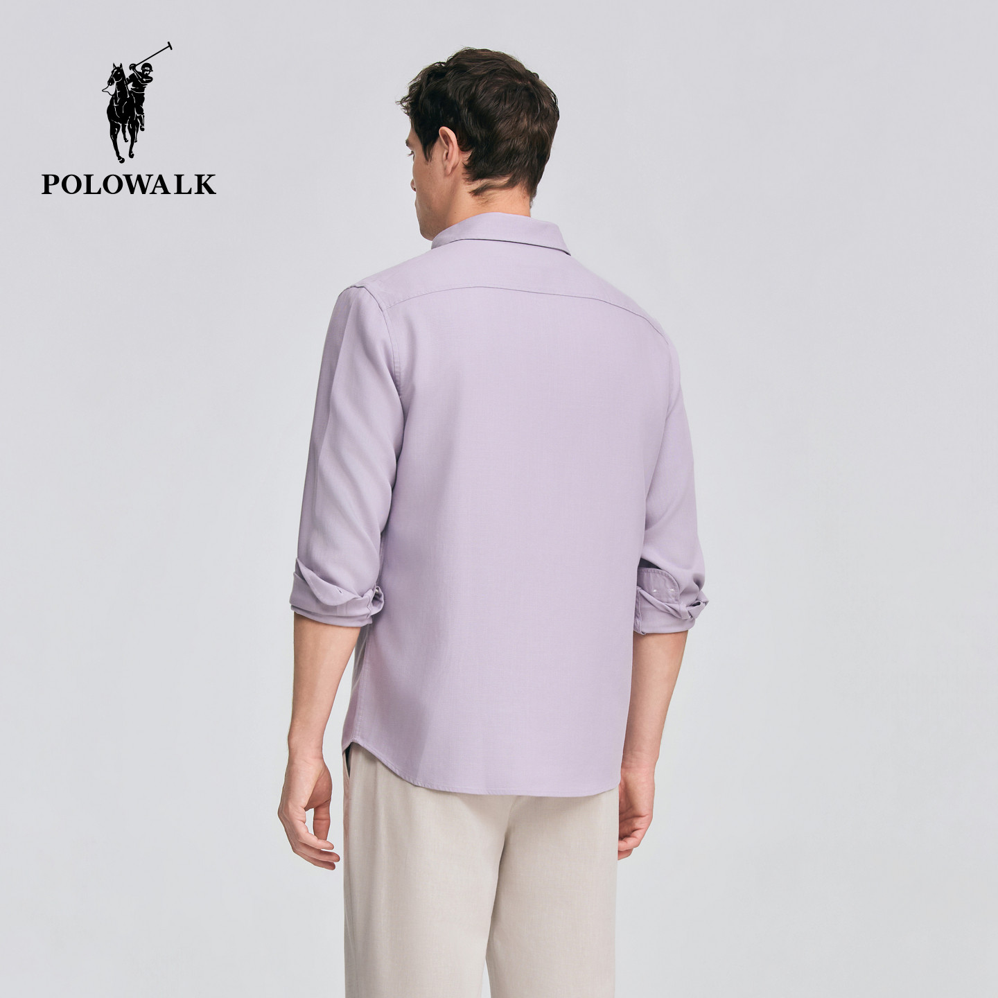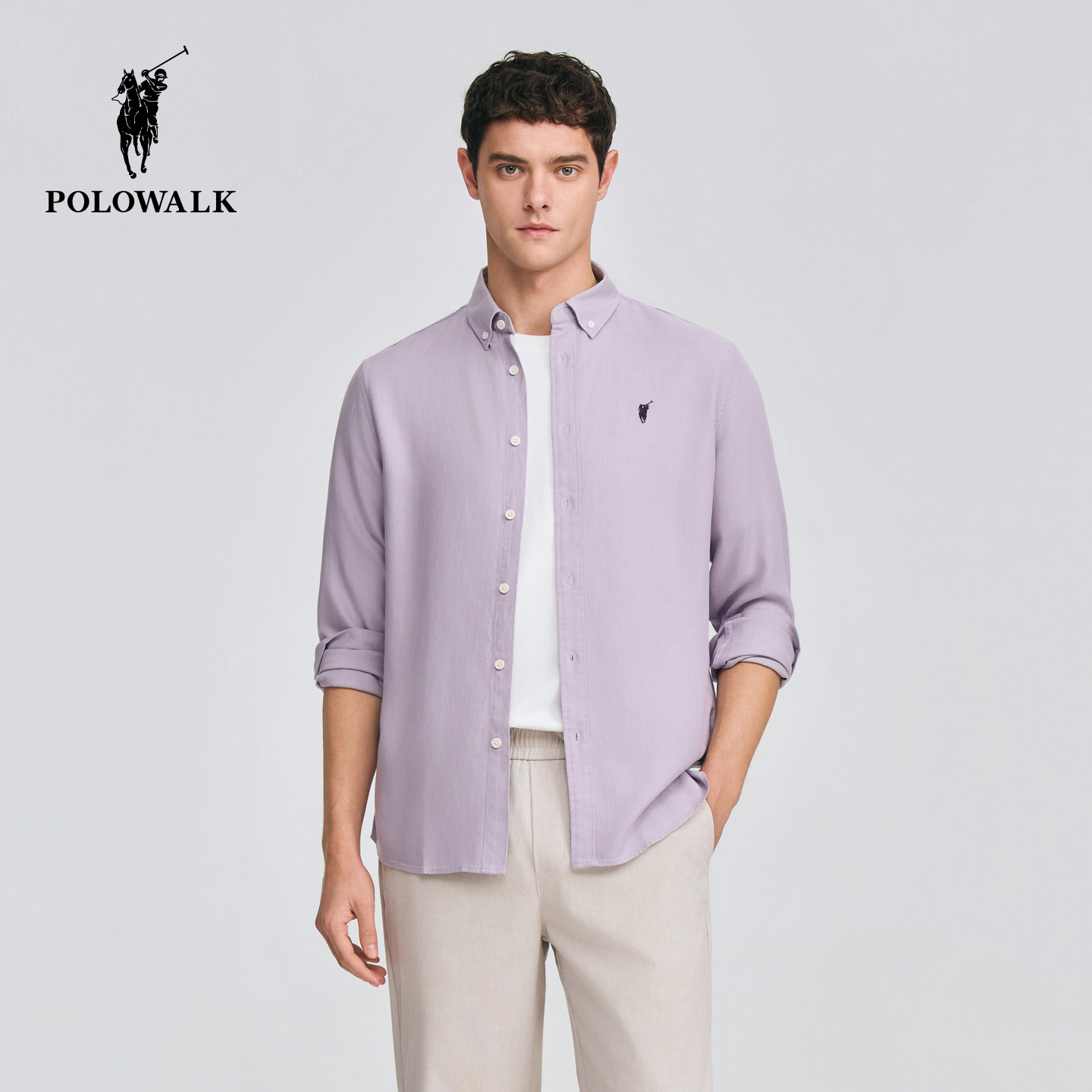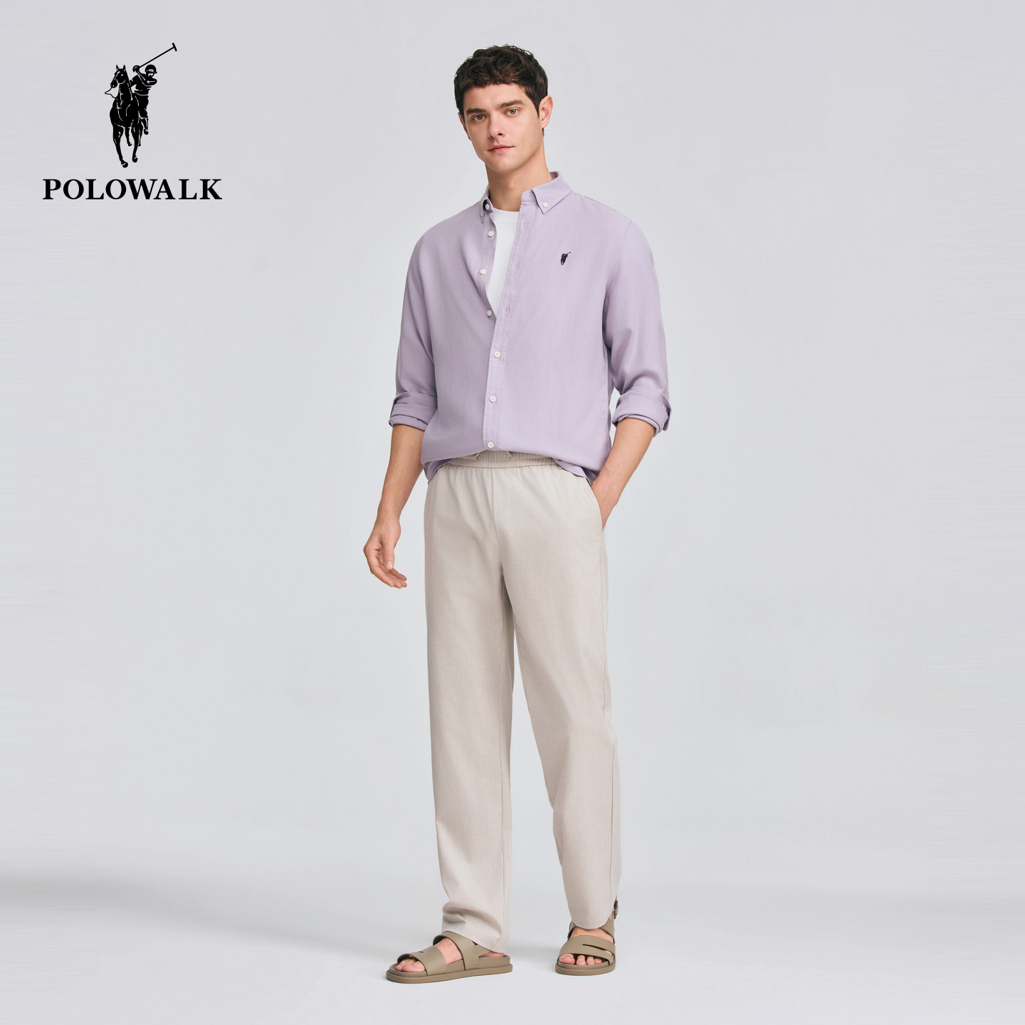 POLOWALK男式长袖衬衫2026春季新品亚麻混纺简约纽扣领长袖衬衫