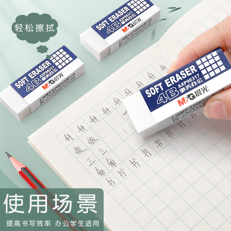 晨光橡皮擦4B儿童学生考试专用无毒不伤纸小学生儿童考试专用学习办公事务办公文具用品无屑白橡皮干净不留痕