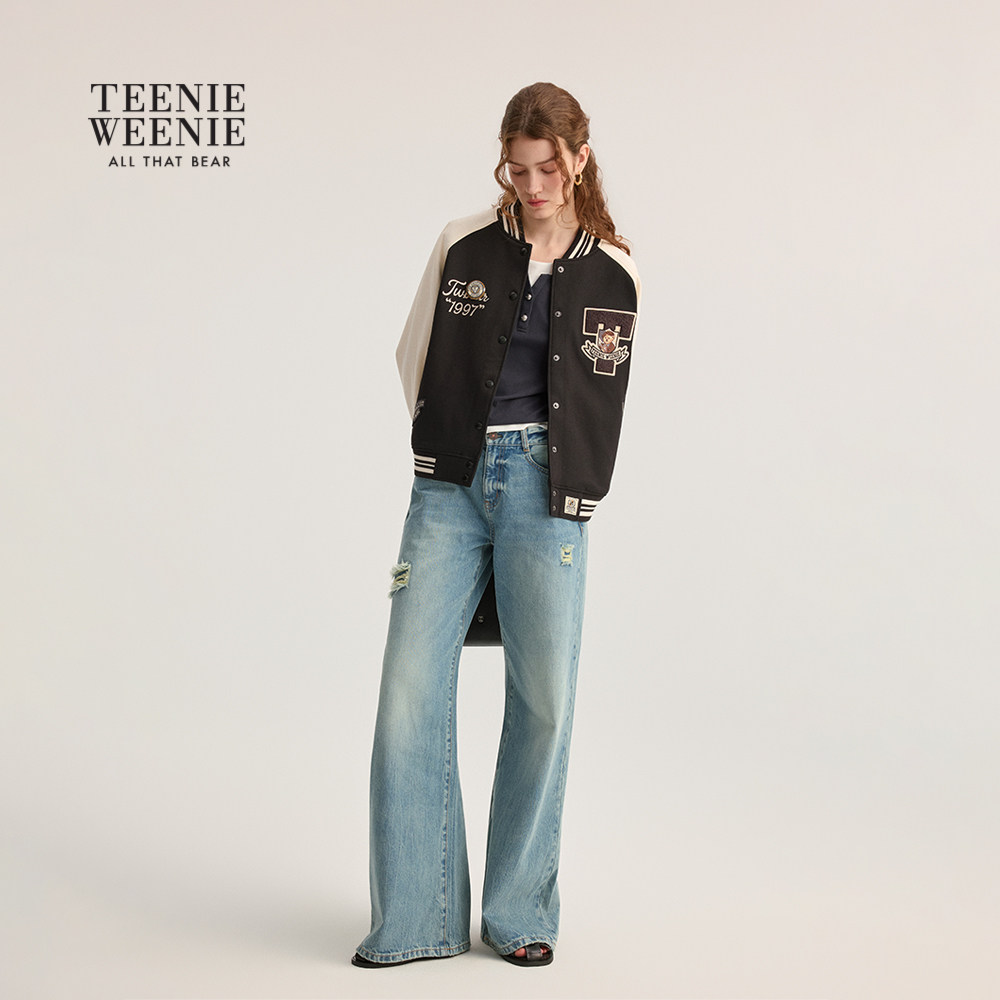 TeenieWeenie小熊女装棒球服休闲外套2025秋新款宽松舒适撞色卫衣
