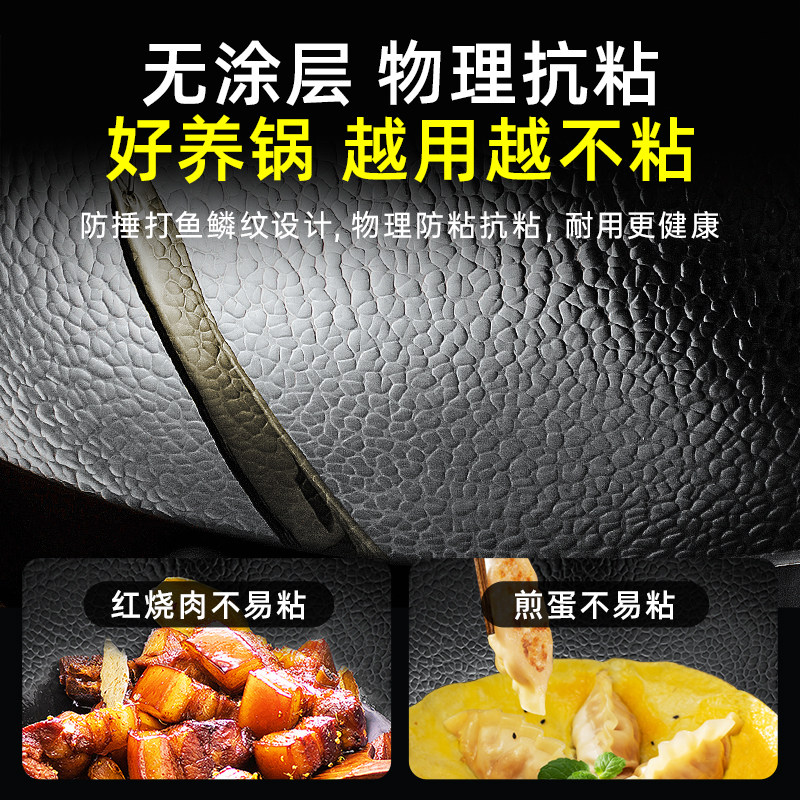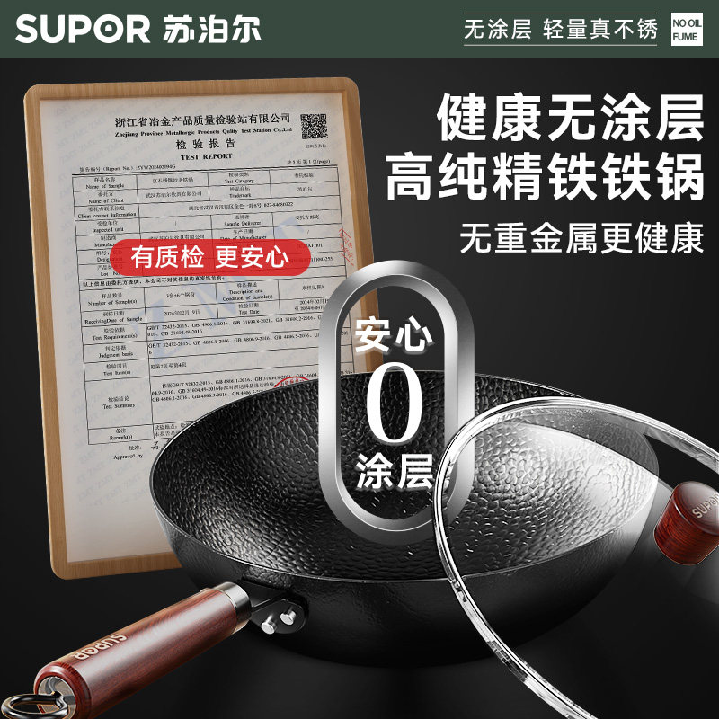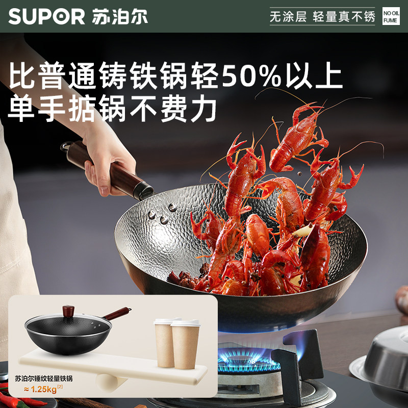 苏泊尔铁锅家用炒菜锅老式无涂层炒锅熟铁锅燃气煤气灶专用免开锅