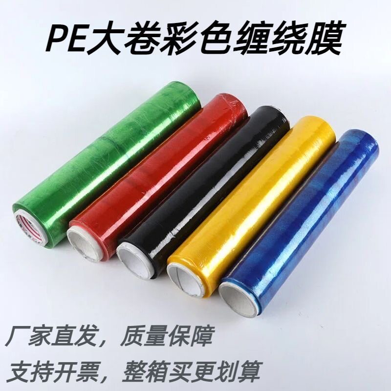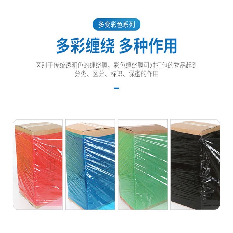 彩色薄膜蓝色拉伸膜黑色缠绕膜乳白色蓝色红色PE工业保鲜膜打包膜