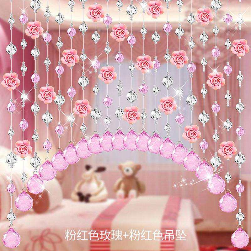 玫瑰花水晶珠帘婚房过道风水隔断全套免打孔房间玄关客厅卧室门帘