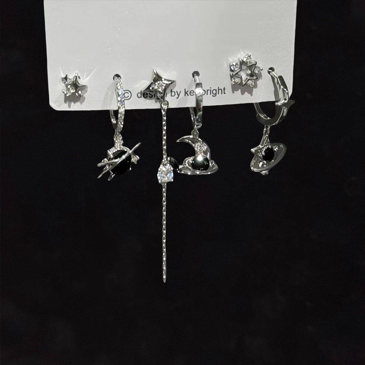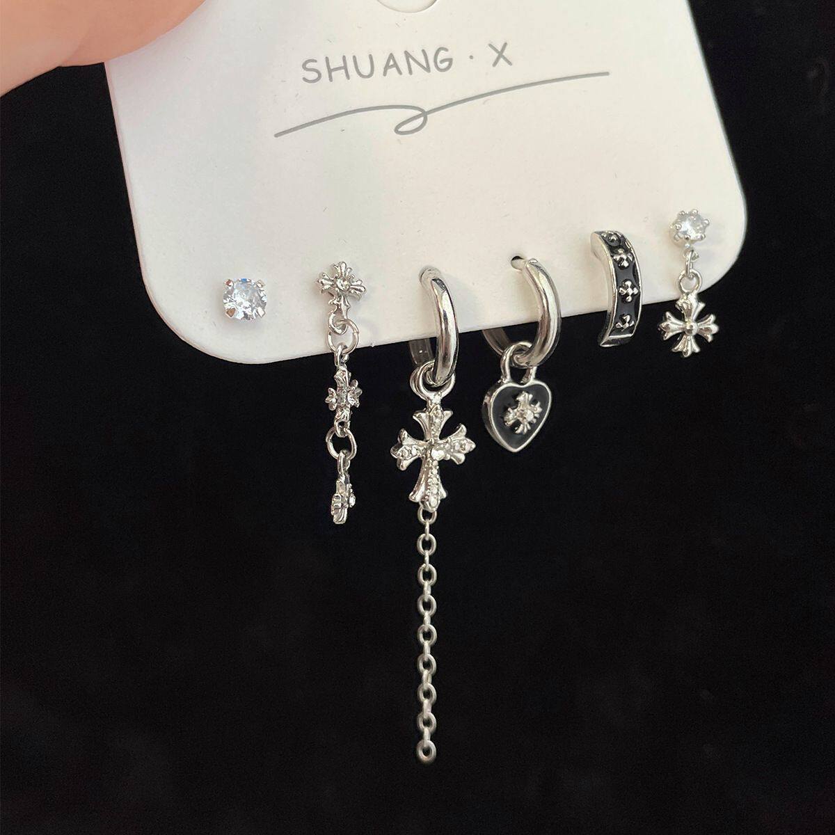 超酷grl ! 爱心锆石六件套耳钉甜酷耳圈小众设计件套耳扣耳饰