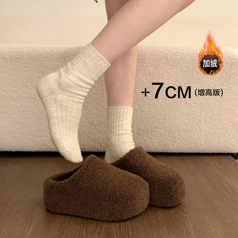 厚底内增高加绒勃肯鞋毛毛拖鞋女外穿2025冬季新款半拖棉拖鞋雪地